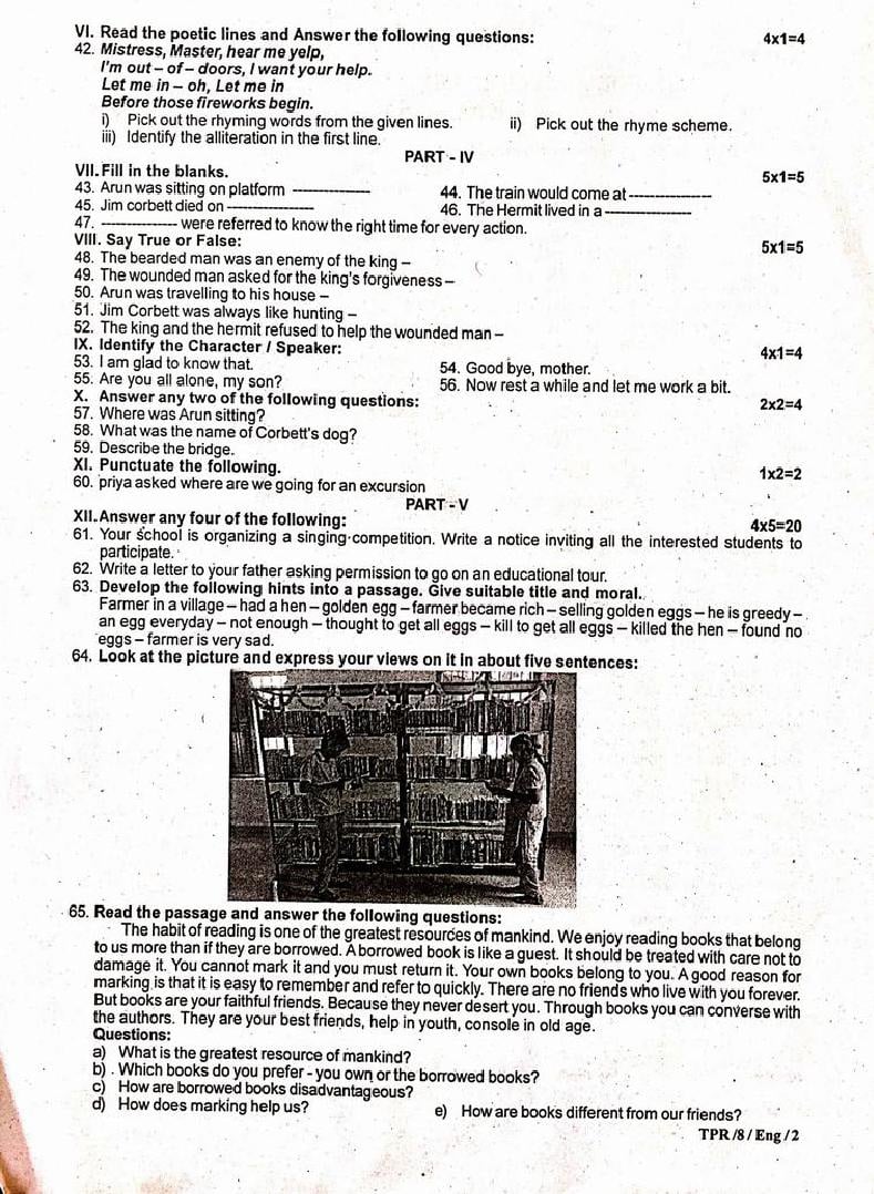 The TN Board Previous Year Question Paper for Class 8th (Class 8) English is as follows.