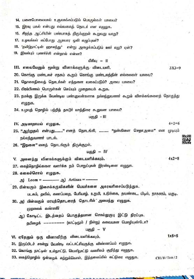 The question paper of Tamil Nadu state Second mid term examinations of standard 8th for Tamil subject is as follows.