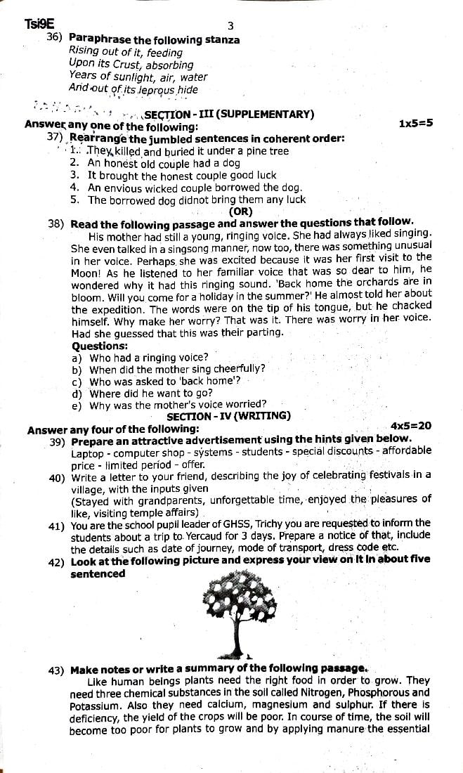 | Educational Resource Here | Tamil Nadu Board Previous Year Question Paper of Class 9 English |
