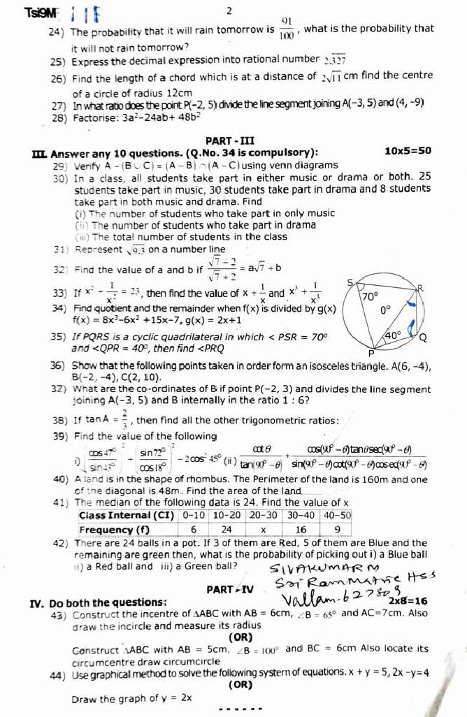 While you can easily download the TN 9th Maths previous year question paper from link above. Similarly you can study the complete Maths question paper here also. The entire Class 9th question paper is as follows.