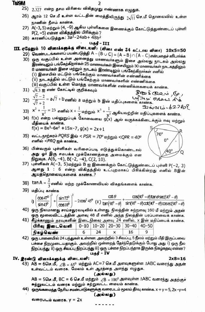 The TN Board Previous Year Question Paper for Class 9th (Class 9) Maths is as follows.