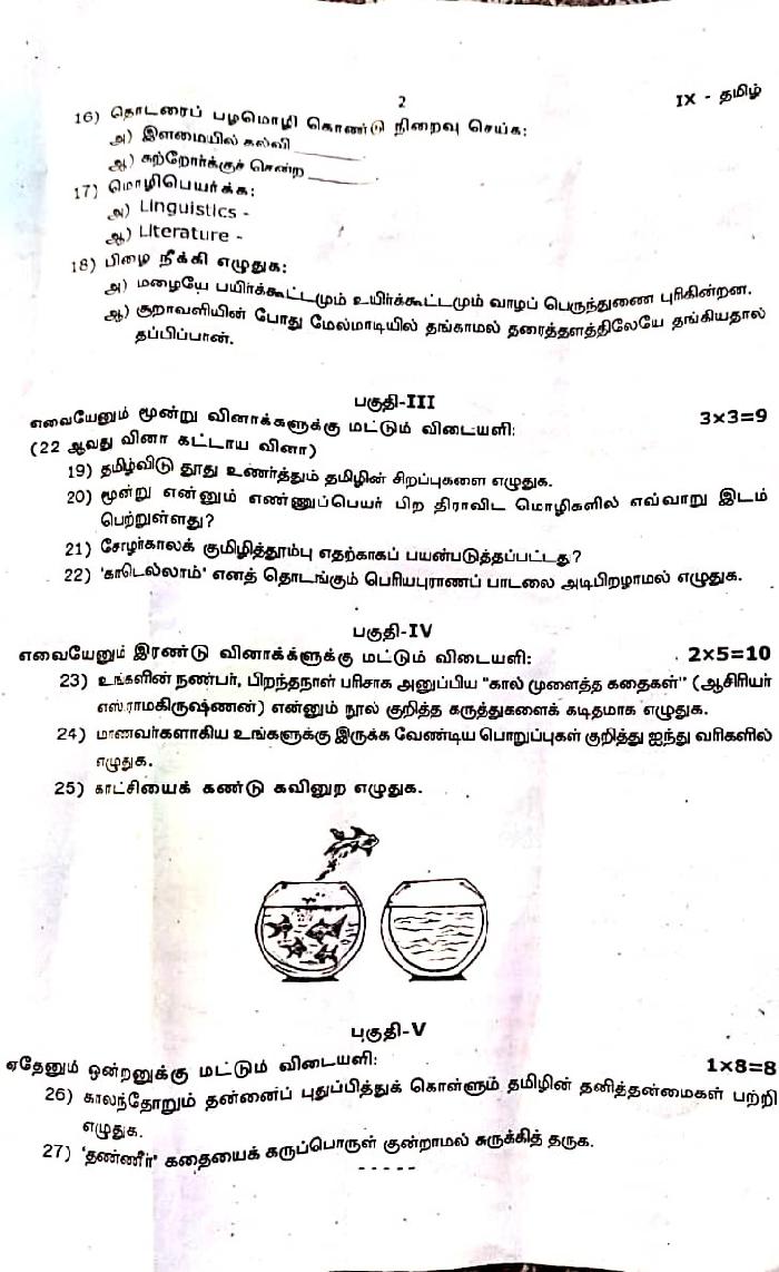 - Tamil Nadu Board Schools hold 1st mid term exam of Tamil subject for students of class 9.
