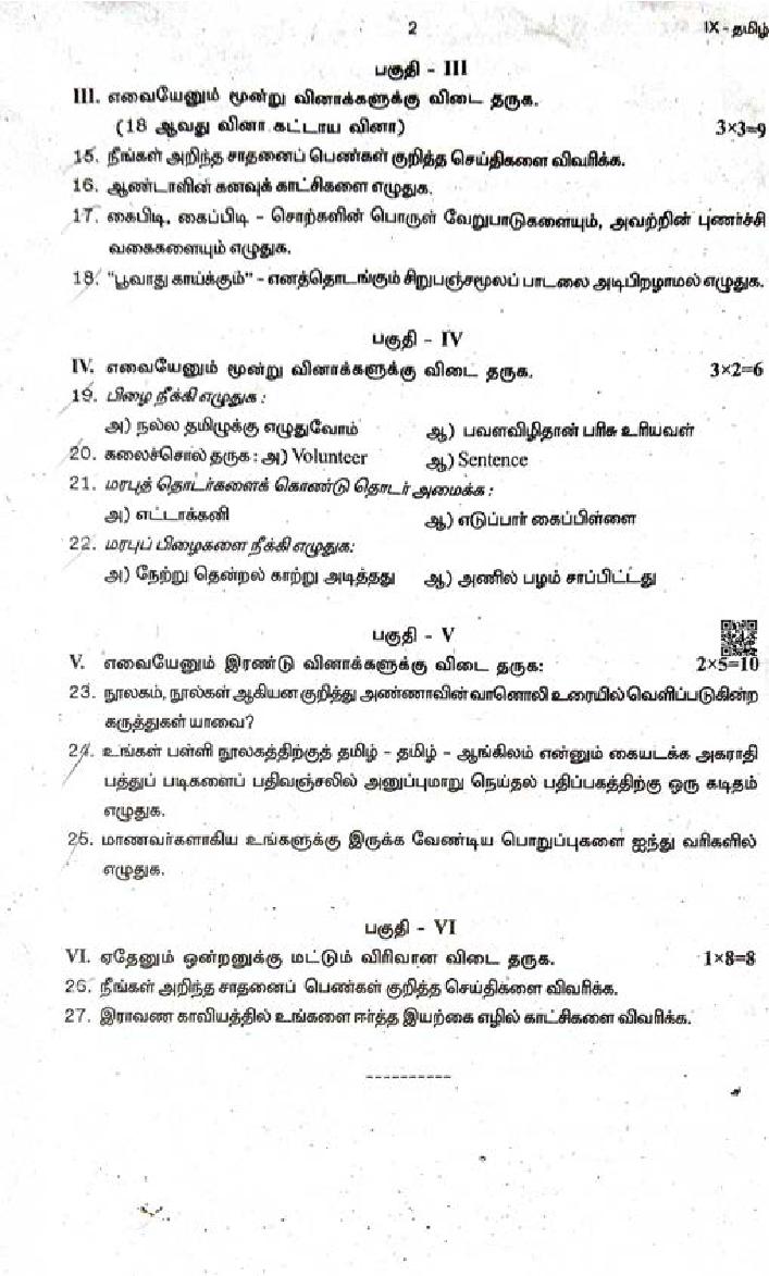 Tags: Class 9thQuestion PapersTamil Nadu