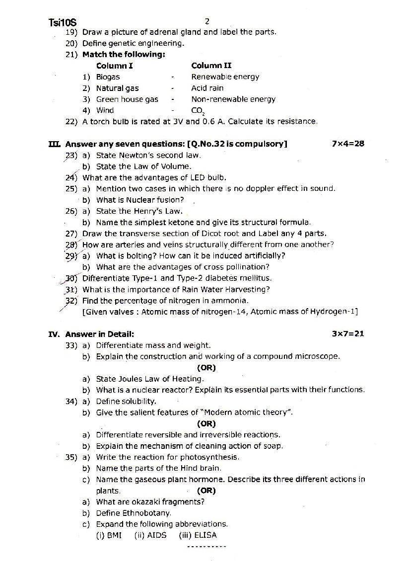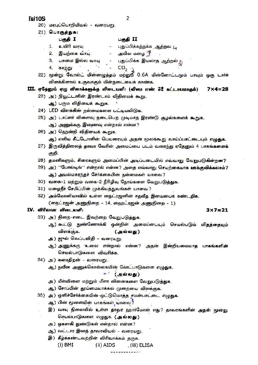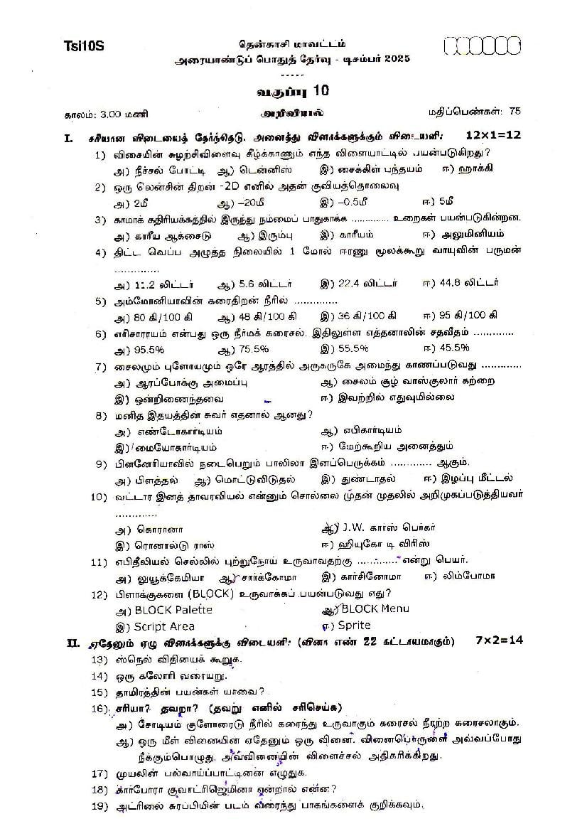 | Educational Resource Here | Tamil Nadu Half Yearly Exam Question Paper of Standard 10 Science |
