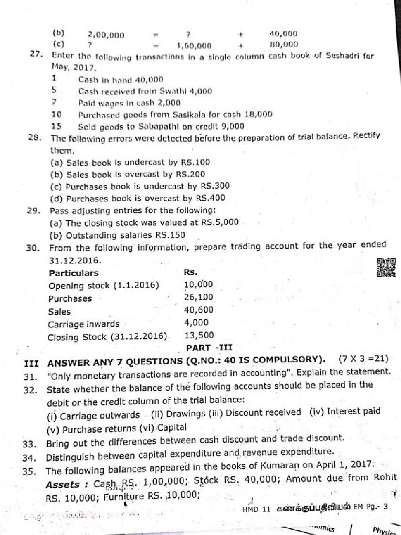| Educational Resource Here | Tamil Nadu Half Yearly Exam Question Paper of Standard 11 Accountancy |