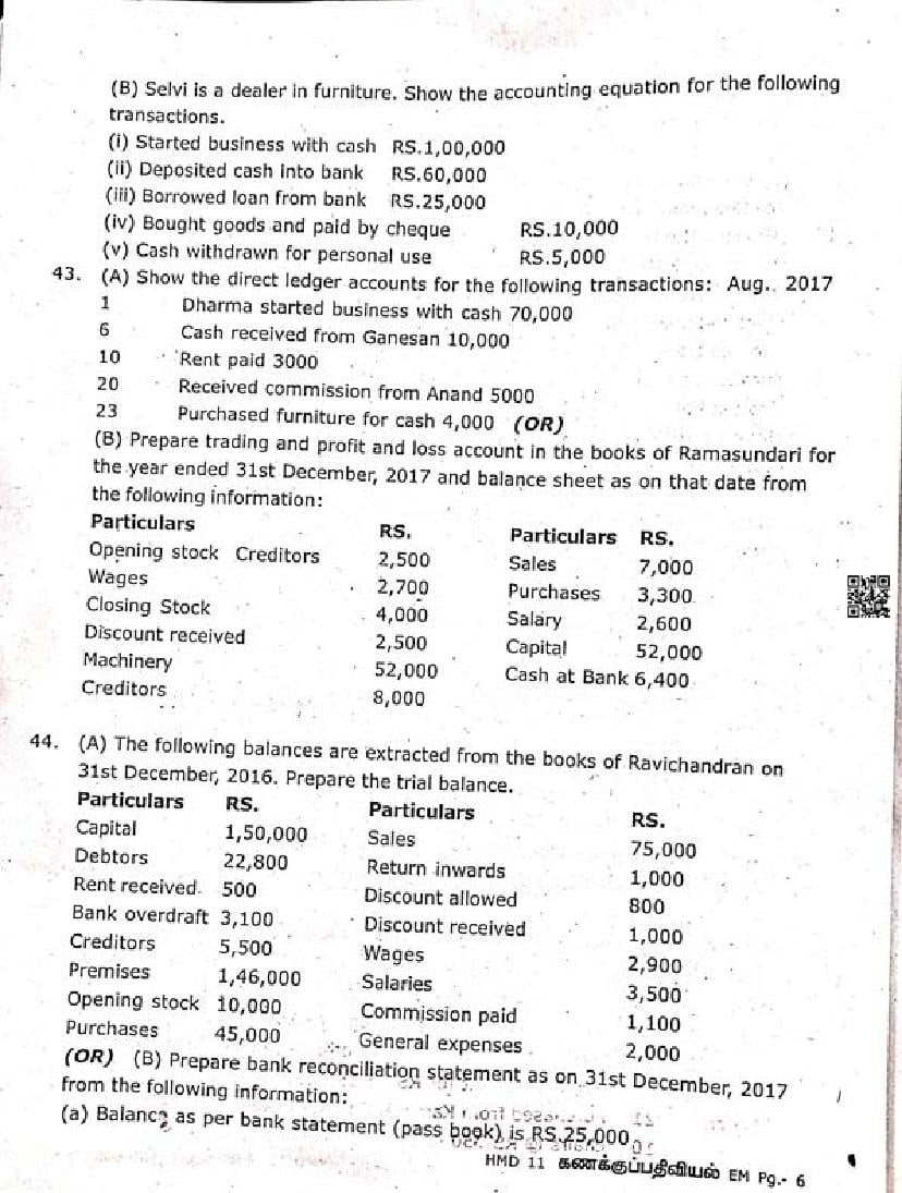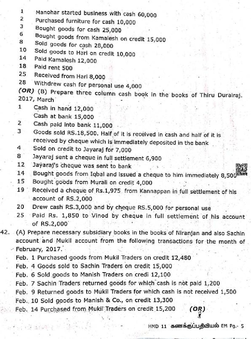 The Accountancy question paper for Tamil Nadu board standard 11th half yearly examinations is given below.