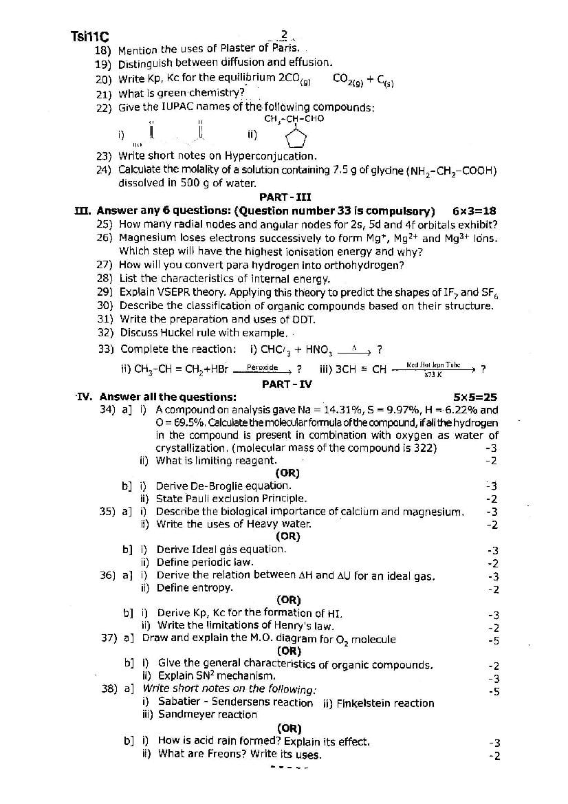 | Educational Resource Here | Tamil Nadu Half Yearly Exam Question Paper of Standard 11 Chemistry |