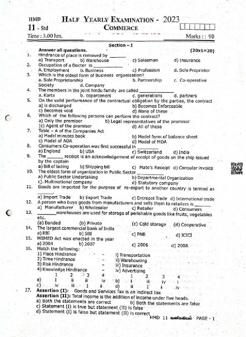 If you have any queries on TN 11th Commerce Half Yearly Question Paper 2024, then please ask in comments below.