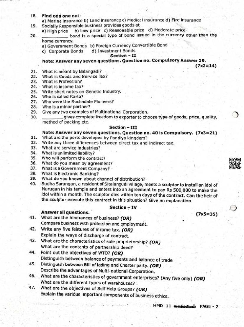 The Commerce question paper for Tamil Nadu board standard 11th half yearly examinations is given below.