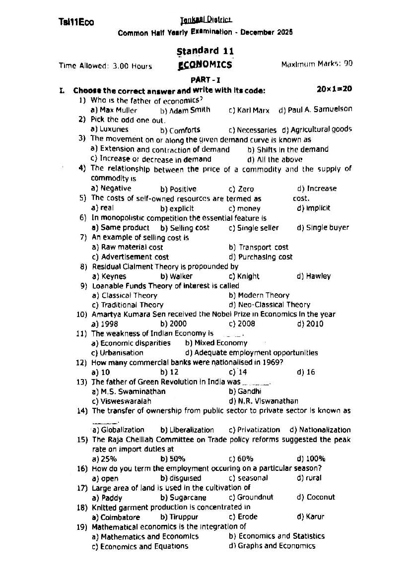 If you have any queries on TN 11th Economics Half Yearly Question Paper 2026, then please ask in comments below.
