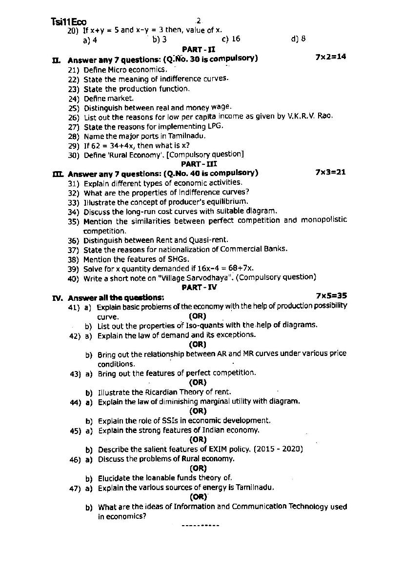 The Economics question paper for Tamil Nadu board standard 11th half yearly examinations is given below.