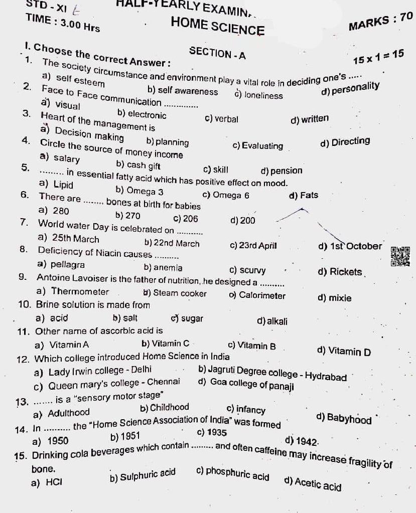 If you have any queries on TN 11th Home Science Half Yearly Question Paper 2024, then please ask in comments below.