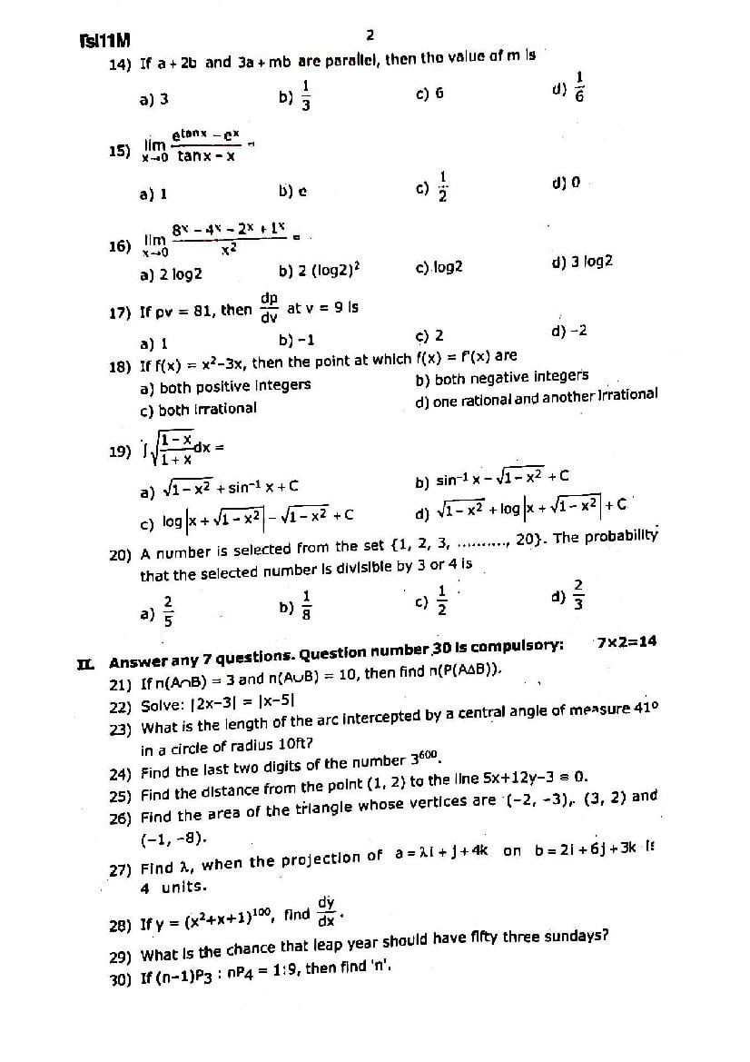 | Educational Resource Here | Tamil Nadu Half Yearly Exam Question Paper of Standard 11 Maths |