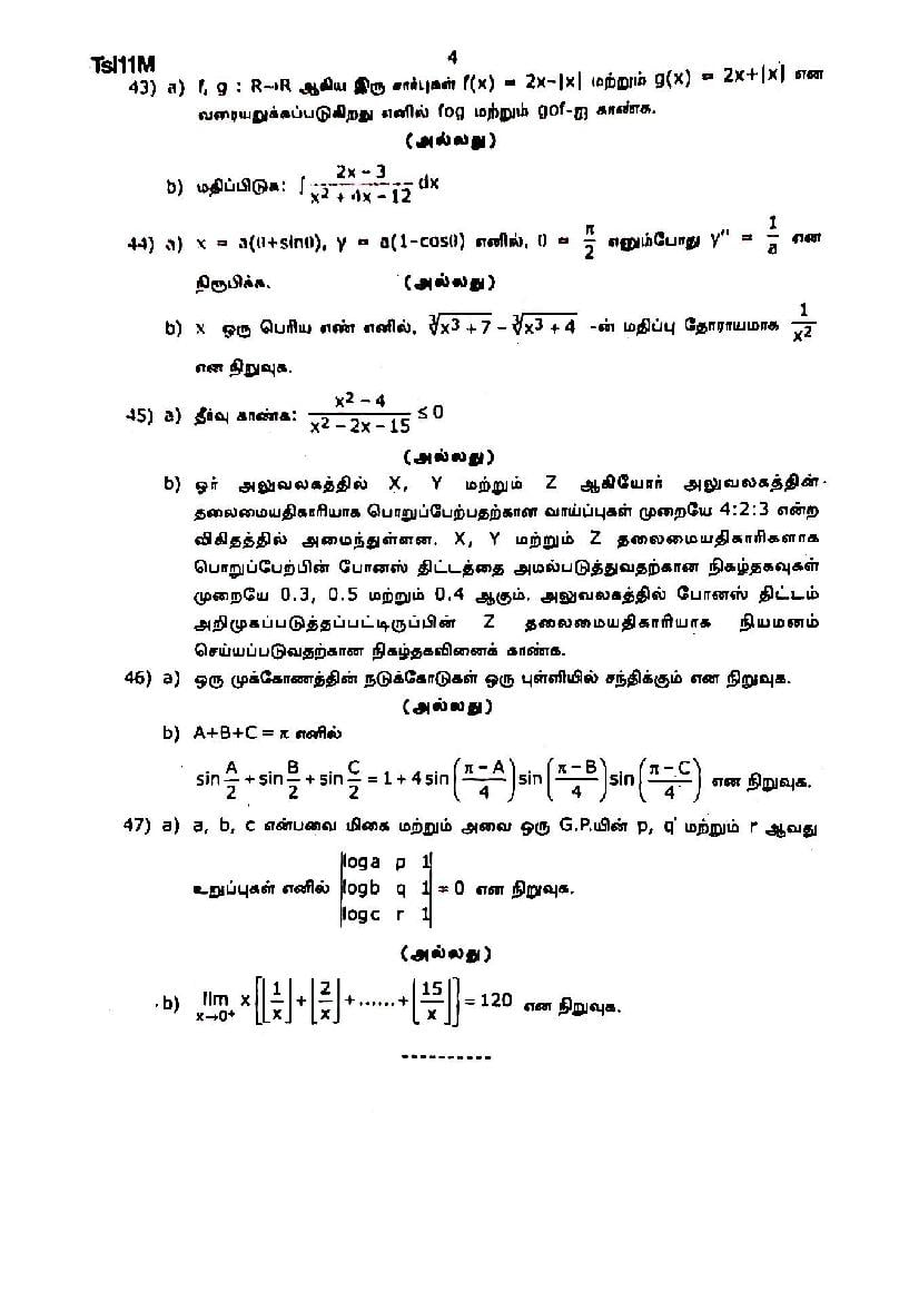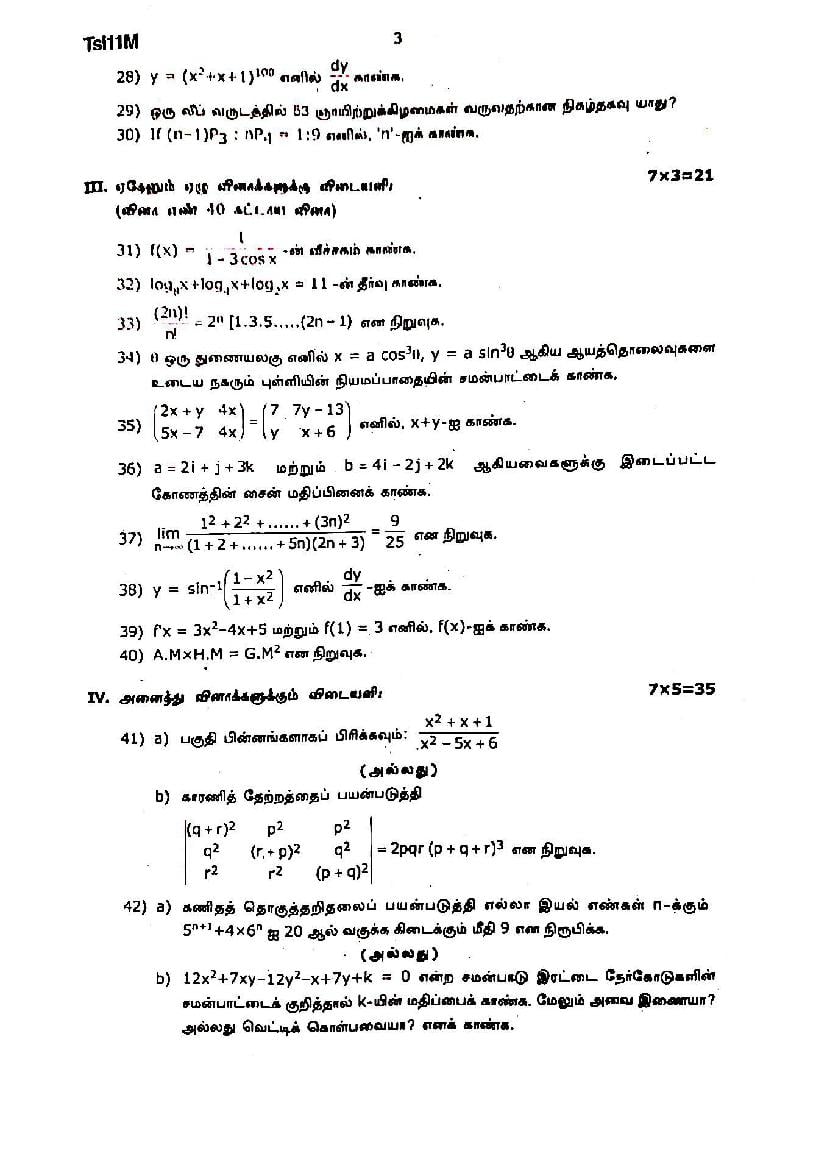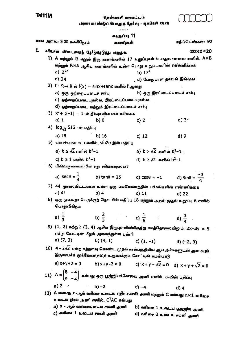 The Maths question paper for Tamil Nadu board standard 11th half yearly examinations is given below.
