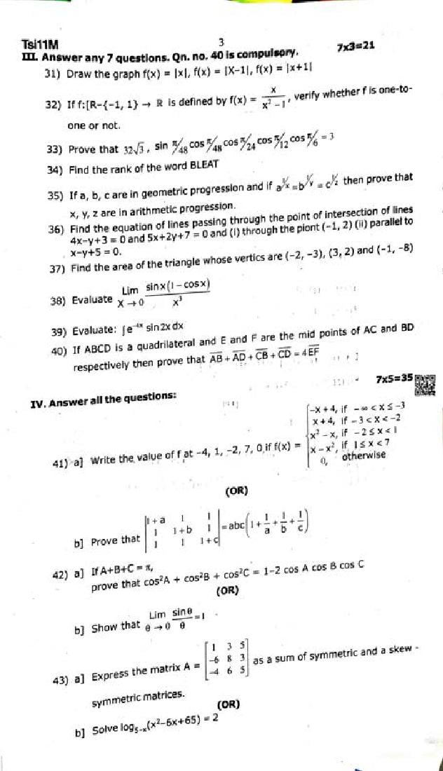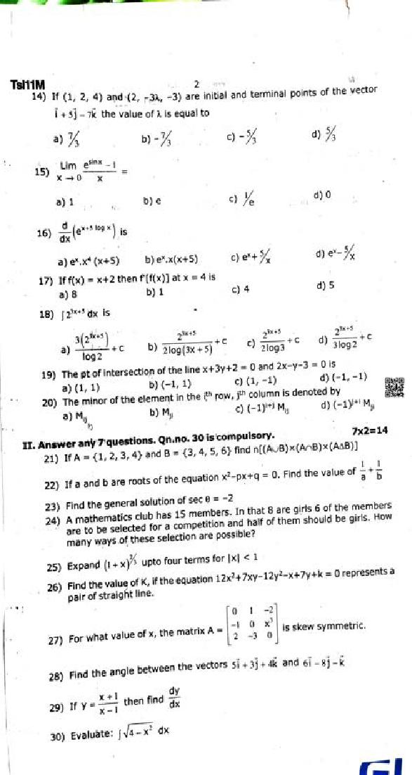 | Educational Resource Here | Tamil Nadu Half Yearly Exam Question Paper of Standard 11 Maths |