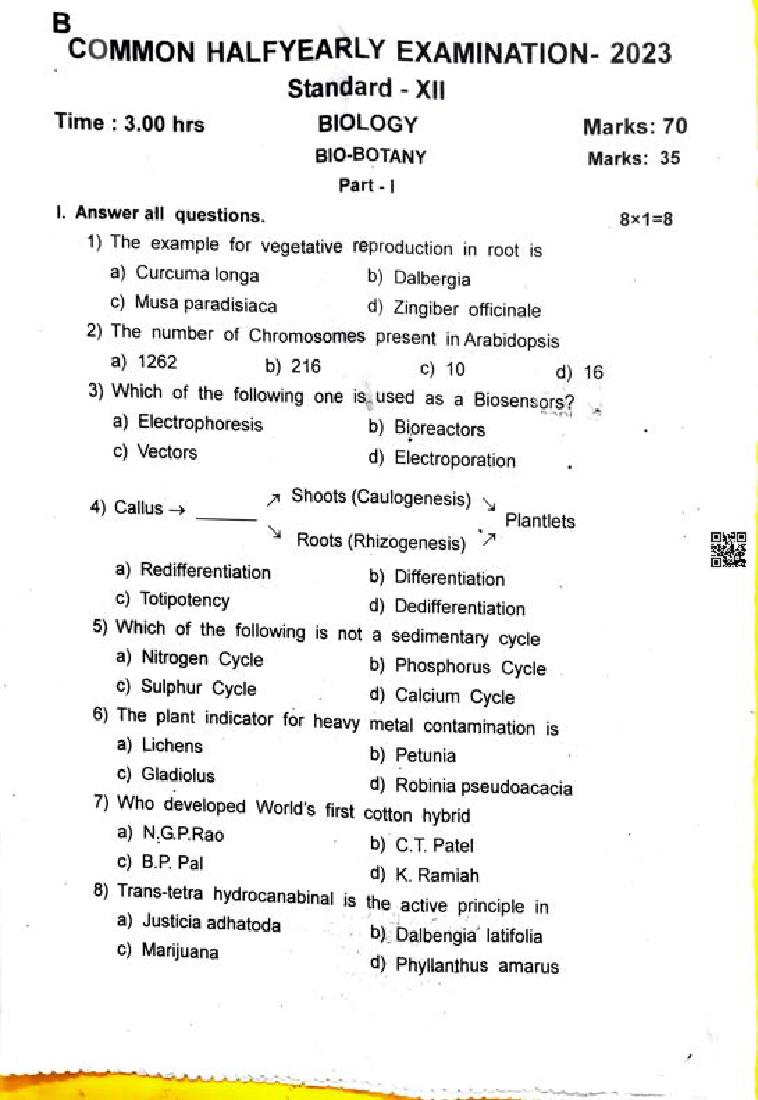 There are more tests besides Biology in half yearly exams. Here are all the subject-wise question papers of TN Board class 12th half yearly exams at aglasem.com.