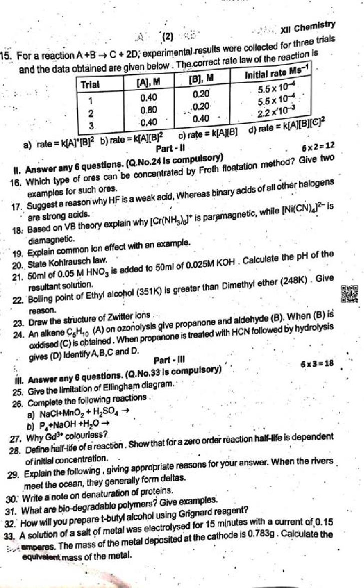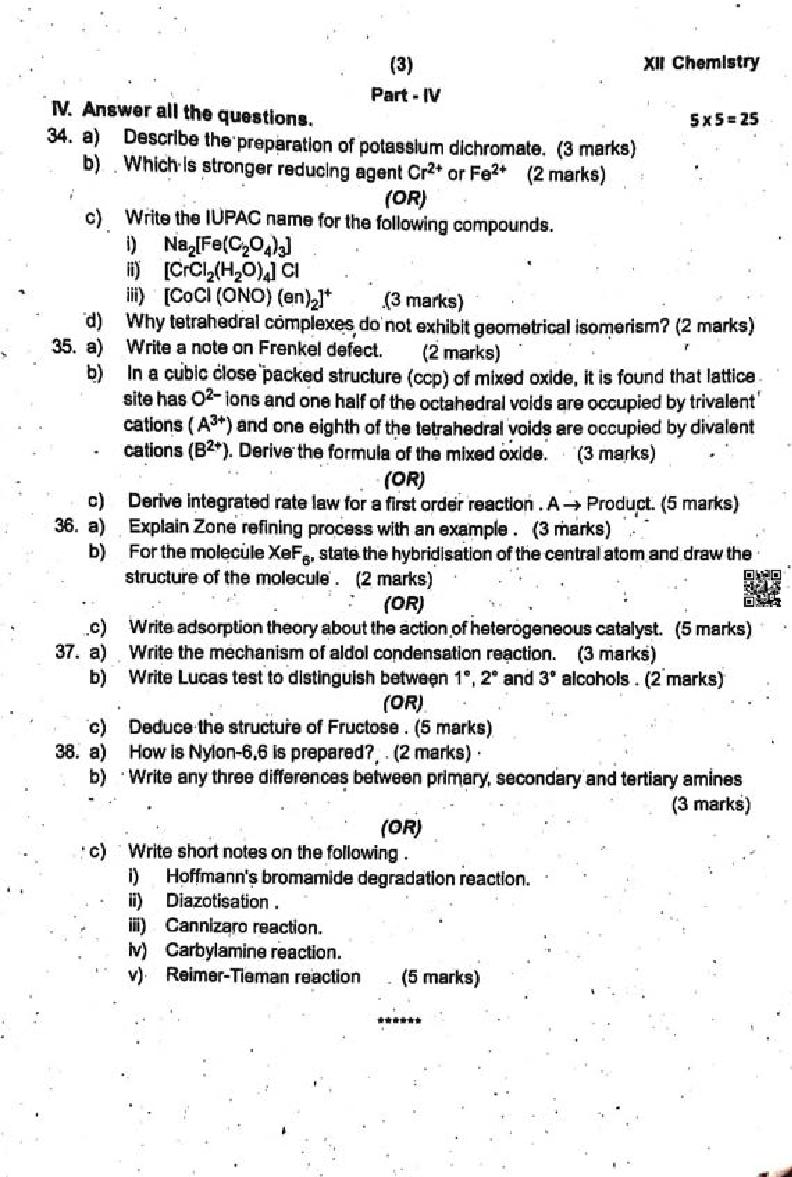 If you have any queries on TN 12th Chemistry Half Yearly Question Paper 2024, then please ask in comments below.