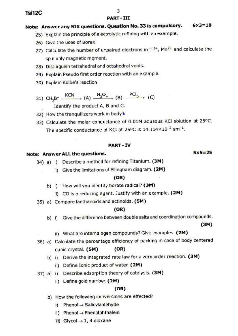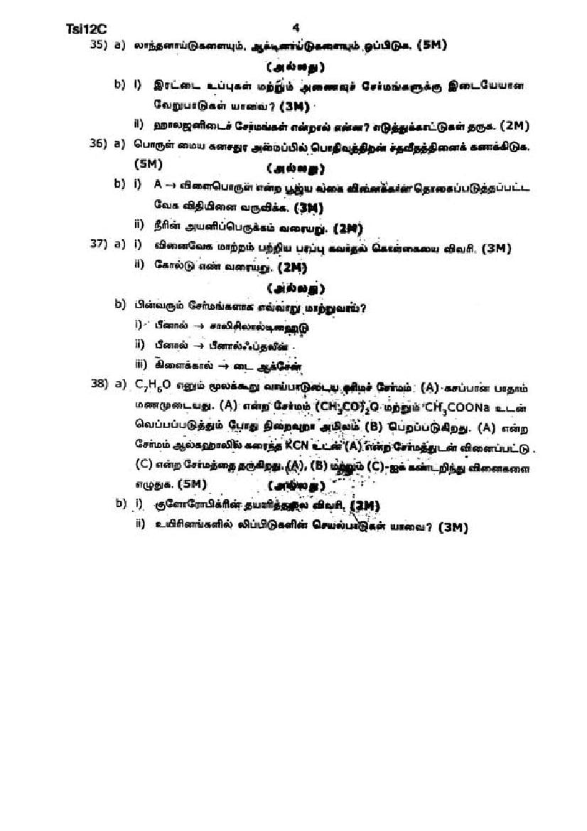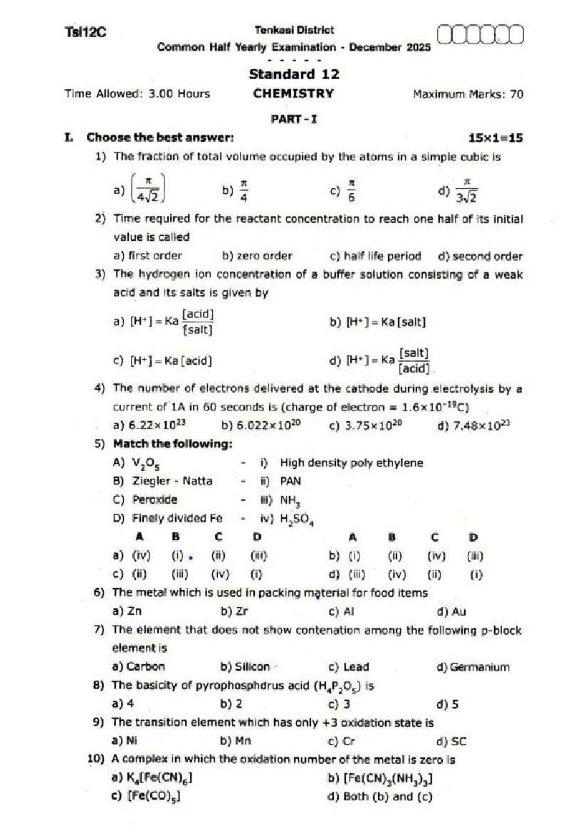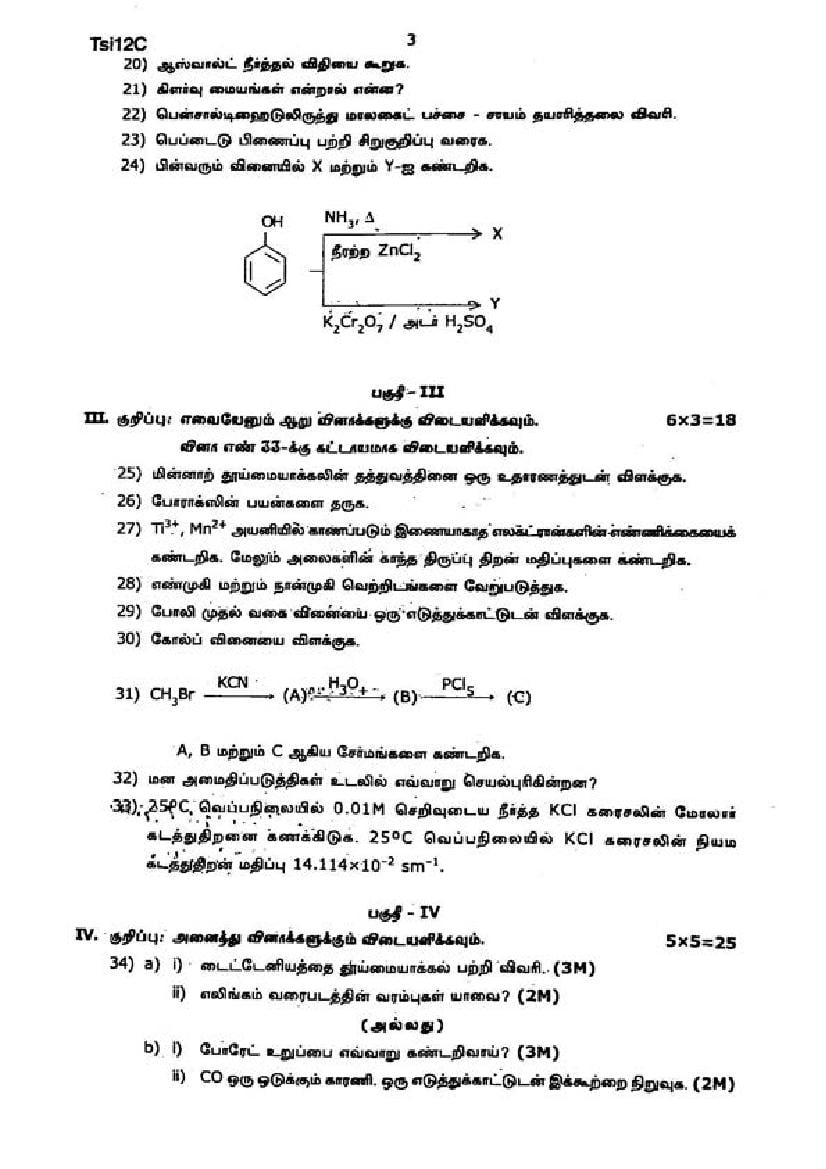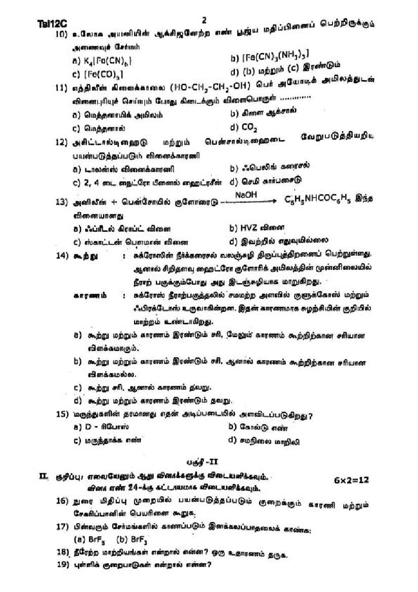 The Chemistry question paper for Tamil Nadu board standard 12th half yearly examinations is given below.