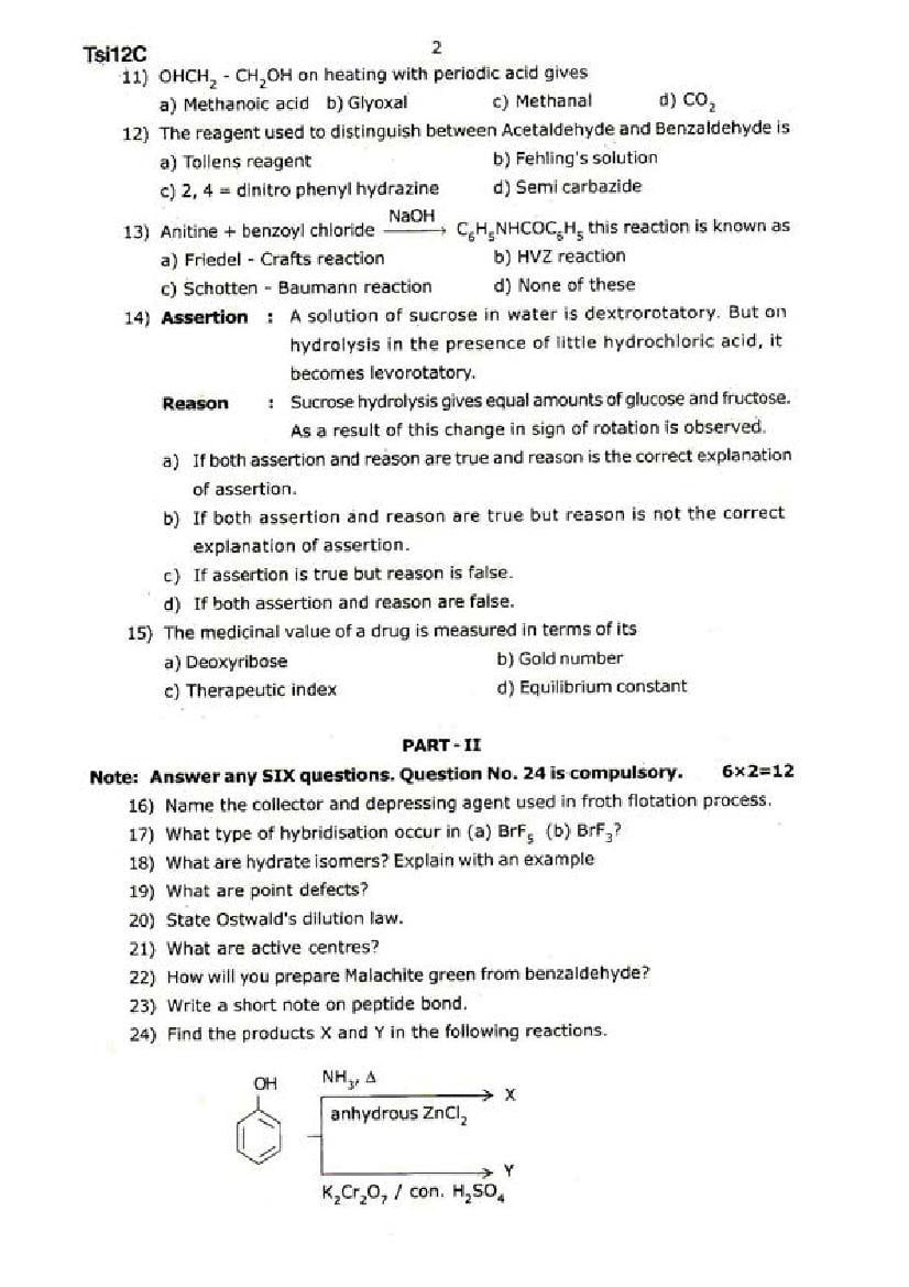| Educational Resource Here | Tamil Nadu Half Yearly Exam Question Paper of Standard 12 Chemistry |