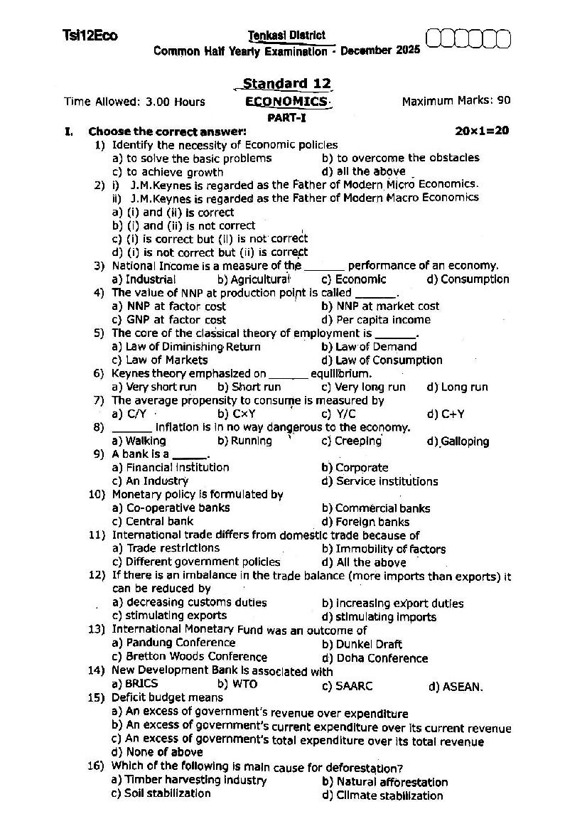 If you have any queries on TN 12th Economics Half Yearly Question Paper 2026, then please ask in comments below.