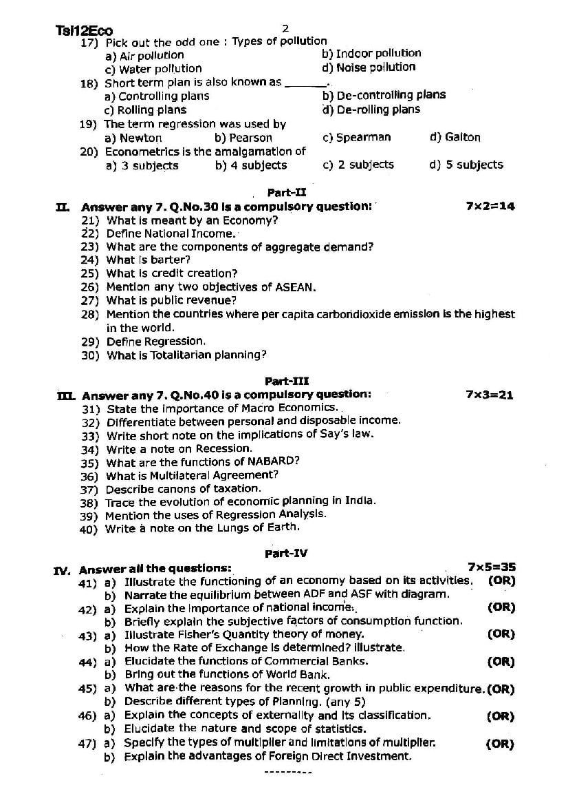 | Educational Resource Here | Tamil Nadu Half Yearly Exam Question Paper of Standard 12 Economics |