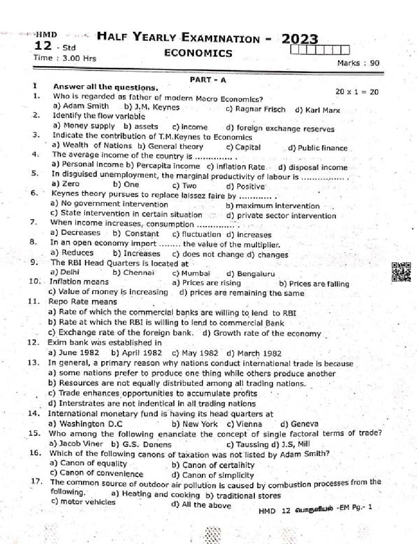 If you have any queries on TN 12th Economics Half Yearly Question Paper 2024, then please ask in comments below.