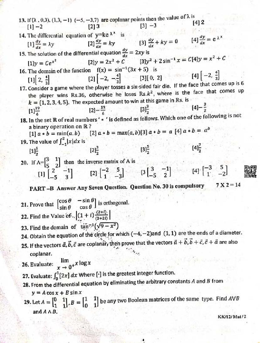 Educational Resource HereTamil Nadu Half Yearly Exam Question Paper of Standard 12 Maths