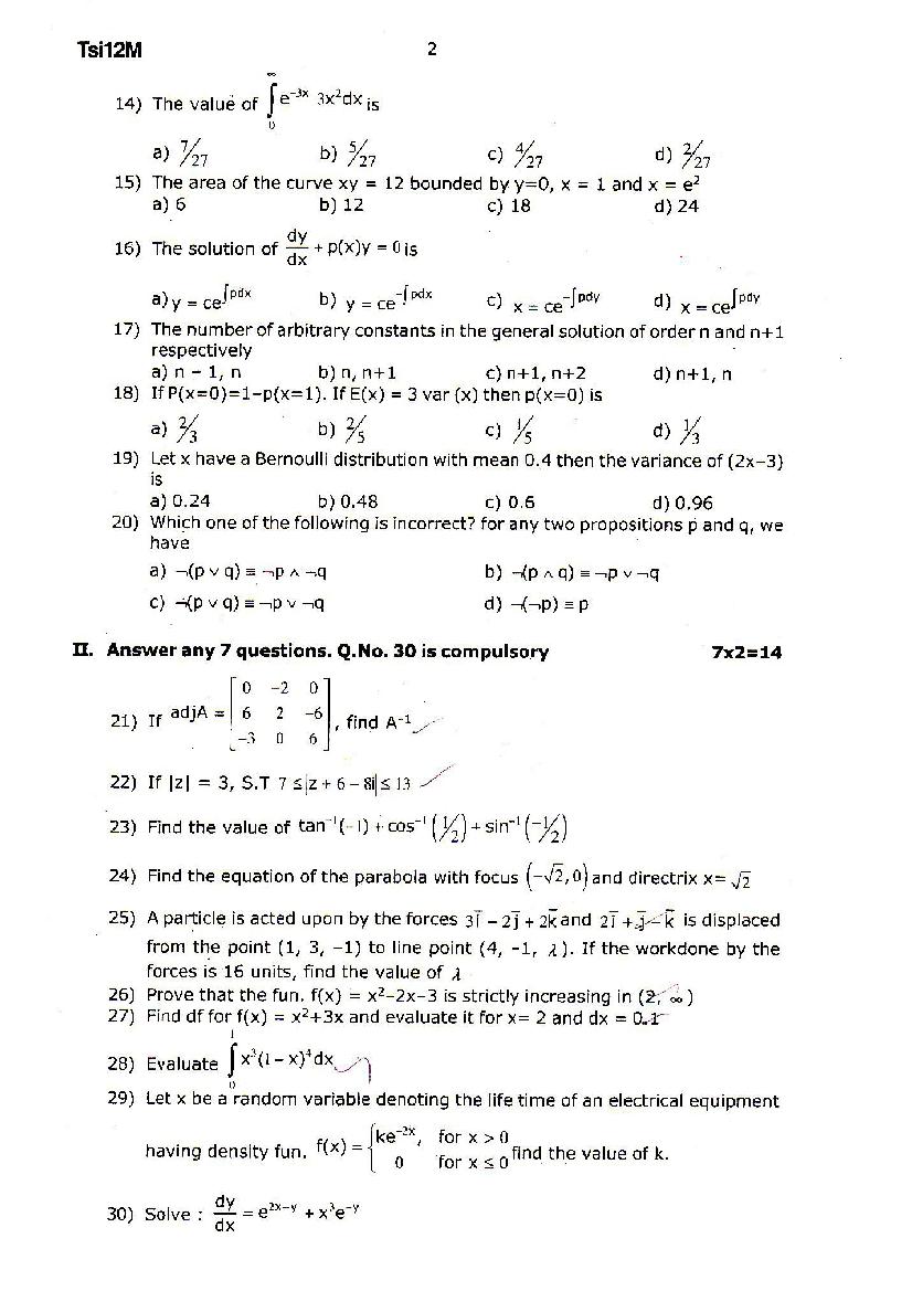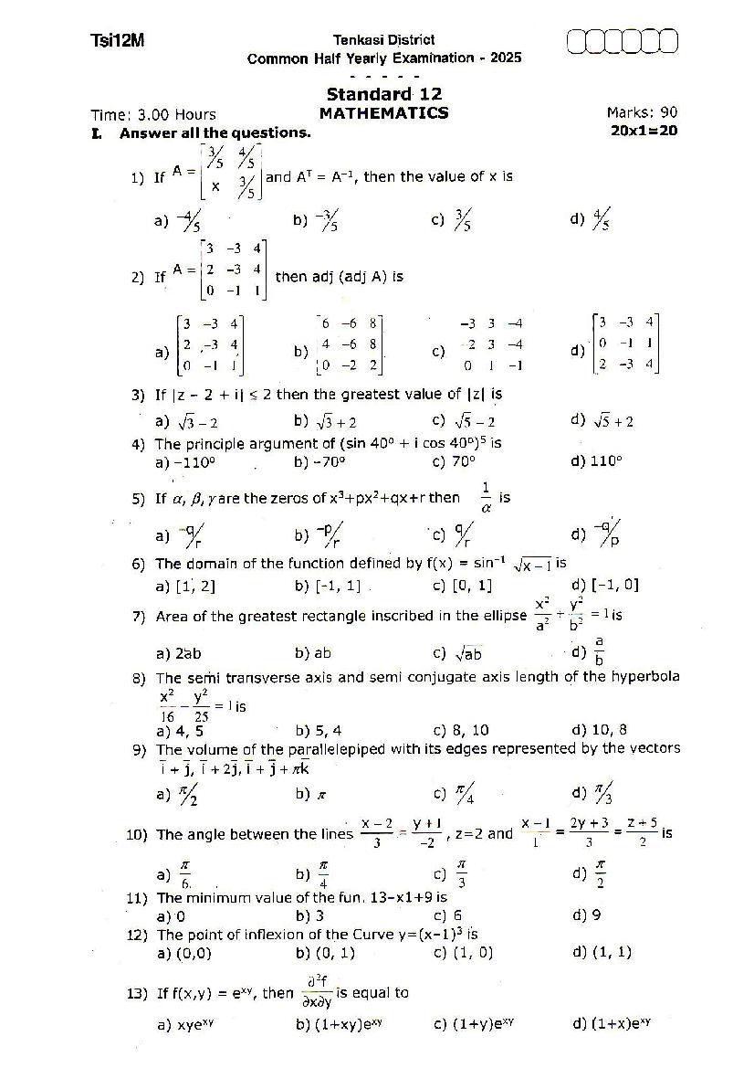 | Educational Resource Here | Tamil Nadu Half Yearly Exam Question Paper of Standard 12 Maths |