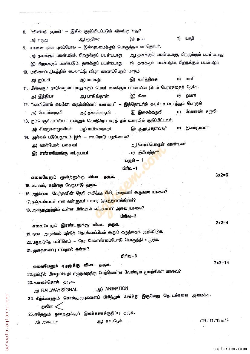 The Tamil question paper for Tamil Nadu board standard 12th half yearly examinations is given below.