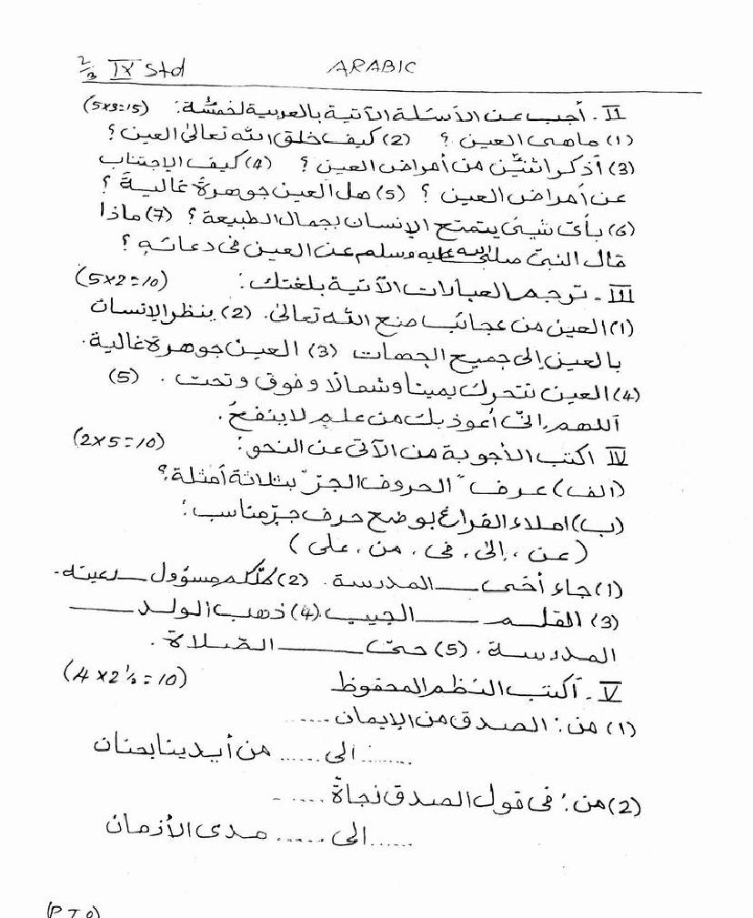 The Arabic question paper for Tamil Nadu board standard 7th half yearly examinations is given below.