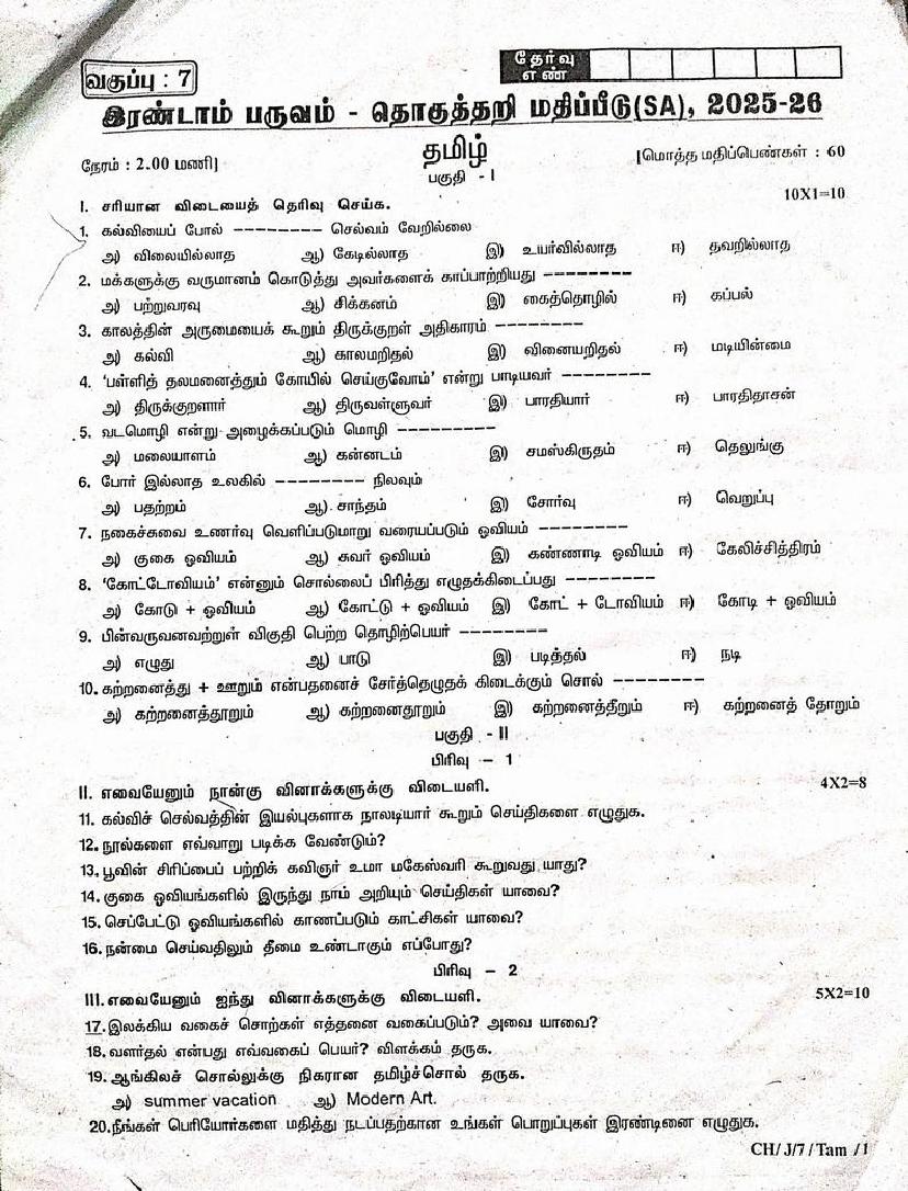 TN Class 7 Half Yearly Exam Question Paper 2025 Tamil View Download