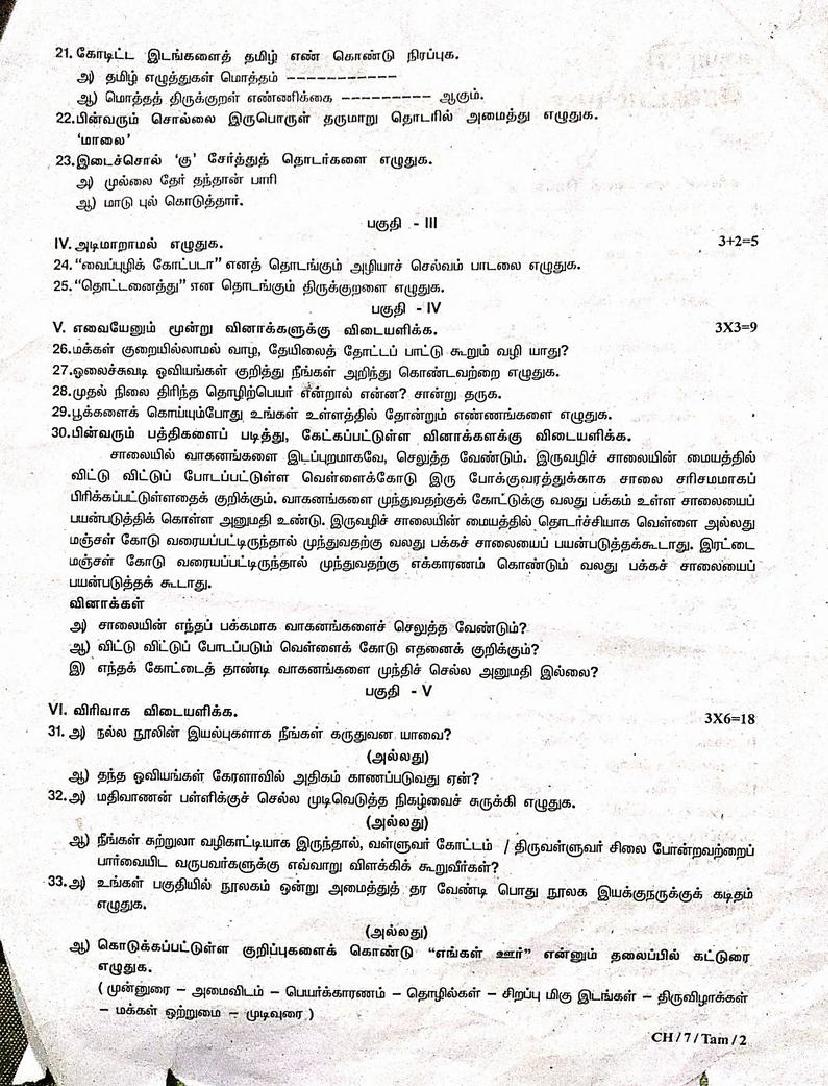 The Tamil question paper for Tamil Nadu board standard 7th half yearly examinations is given below.