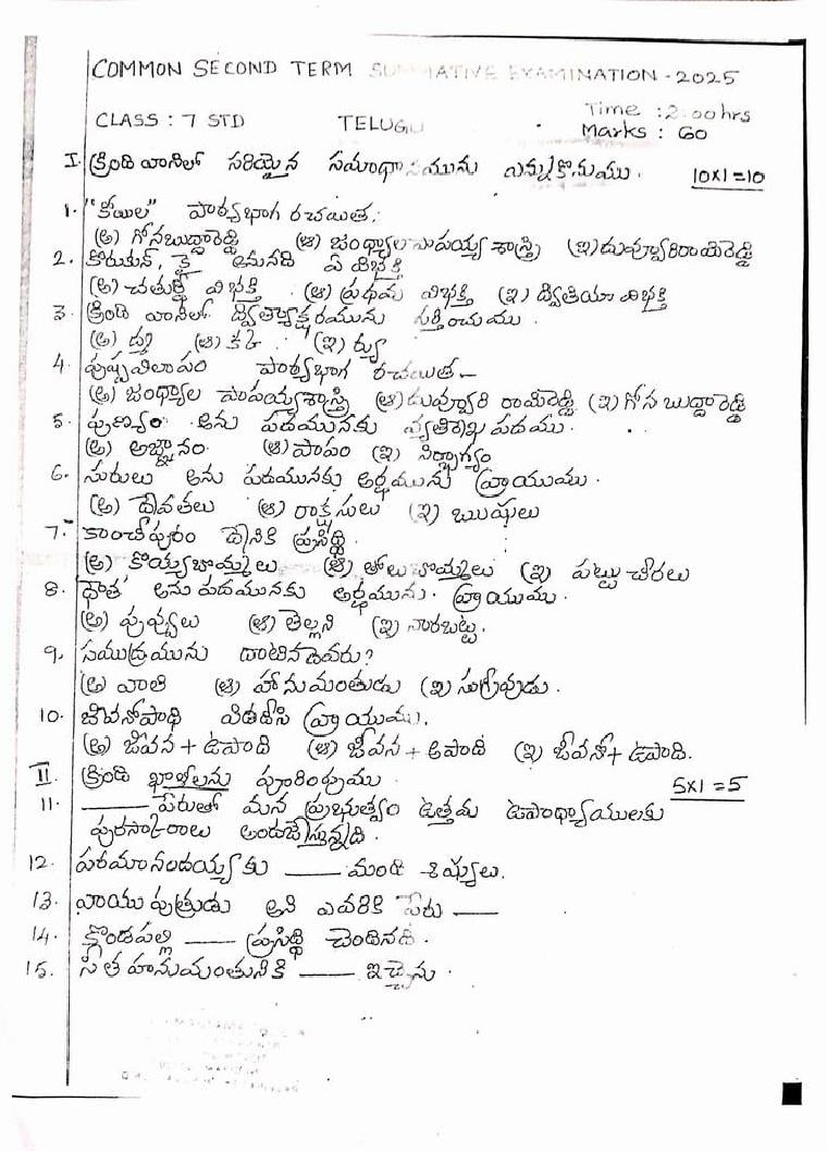 TN Class 7 Half Yearly Exam Question Paper 2025 Telugu View Download