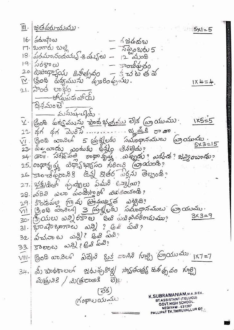 The Telugu question paper for Tamil Nadu board standard 7th half yearly examinations is given below.