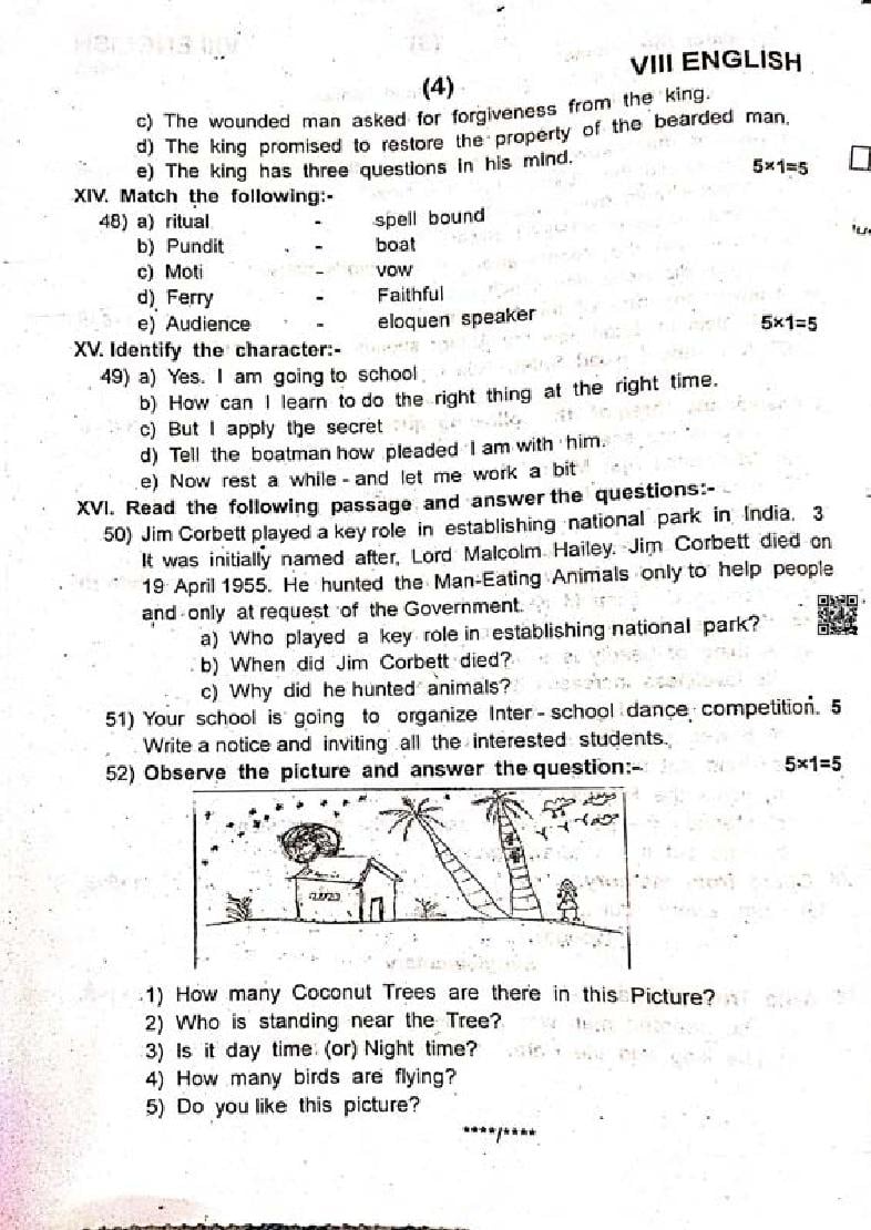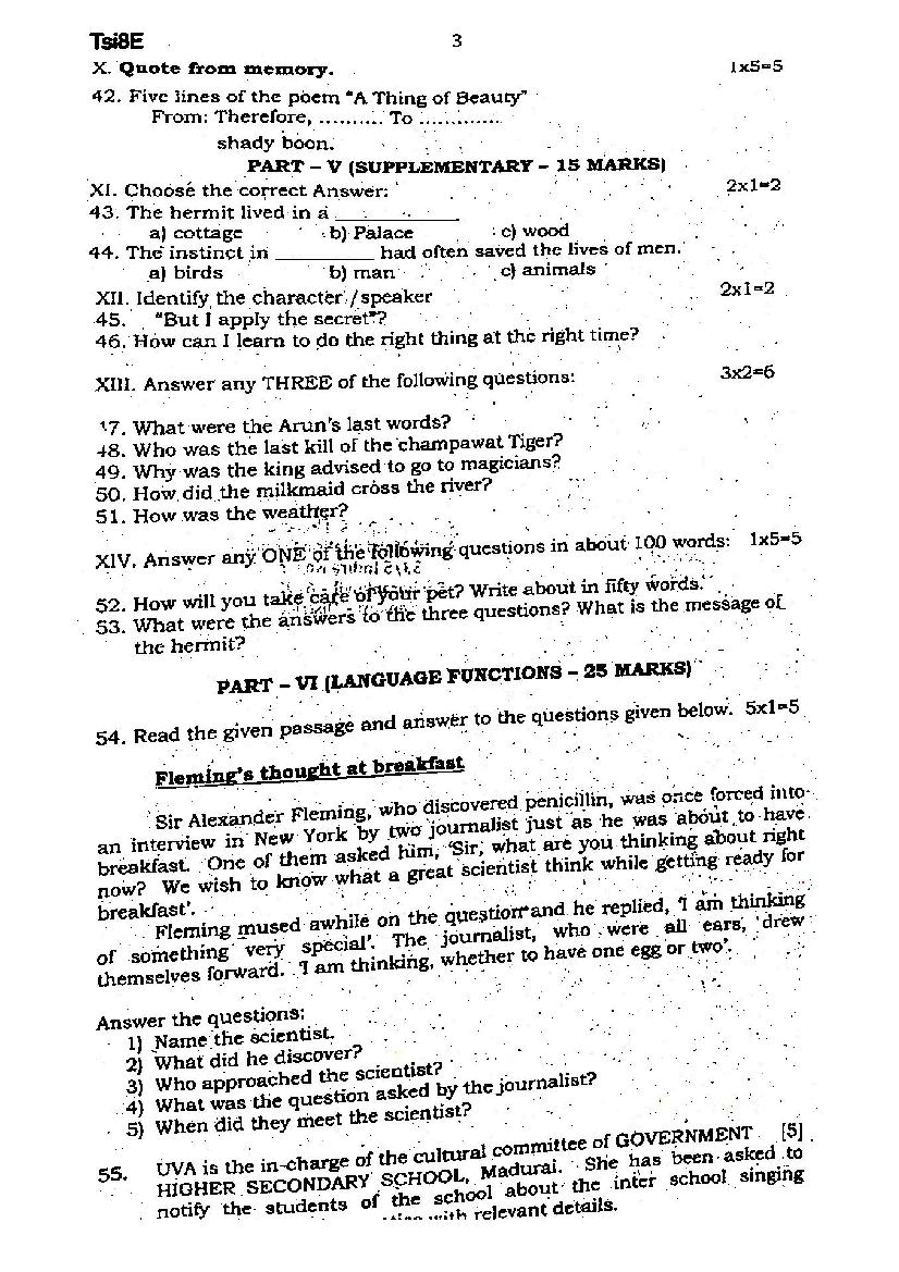 The English question paper for Tamil Nadu board standard 8th half yearly examinations is given below.
