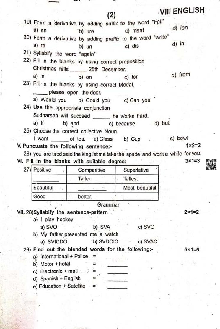 | Educational Resource Here | Tamil Nadu Half Yearly Exam Question Paper of Standard 8 English |