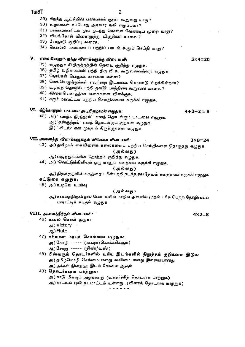 The Tamil question paper for Tamil Nadu board standard 8th half yearly examinations is given below.