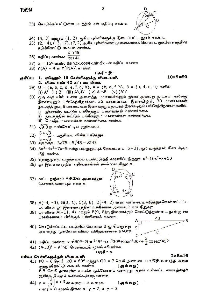 The Maths question paper for Tamil Nadu board standard 9th half yearly examinations is given below.