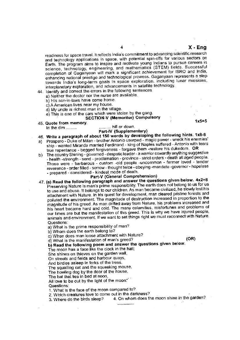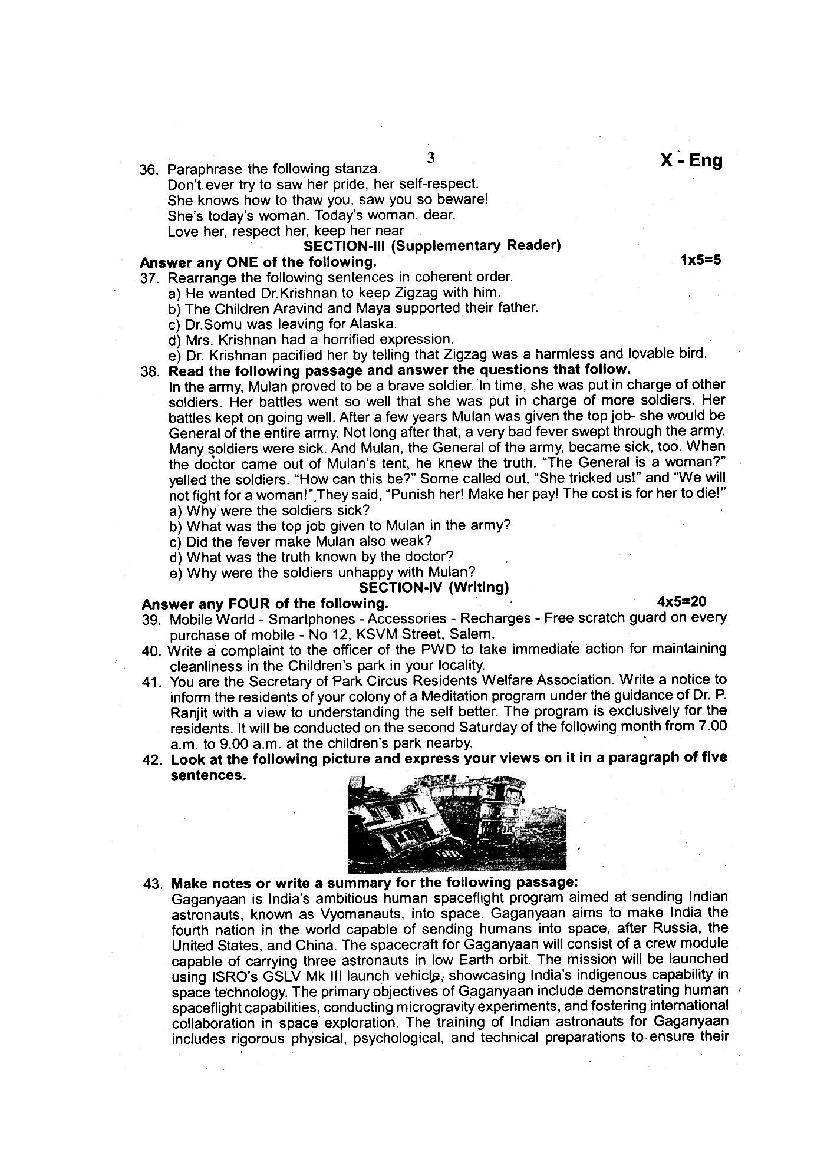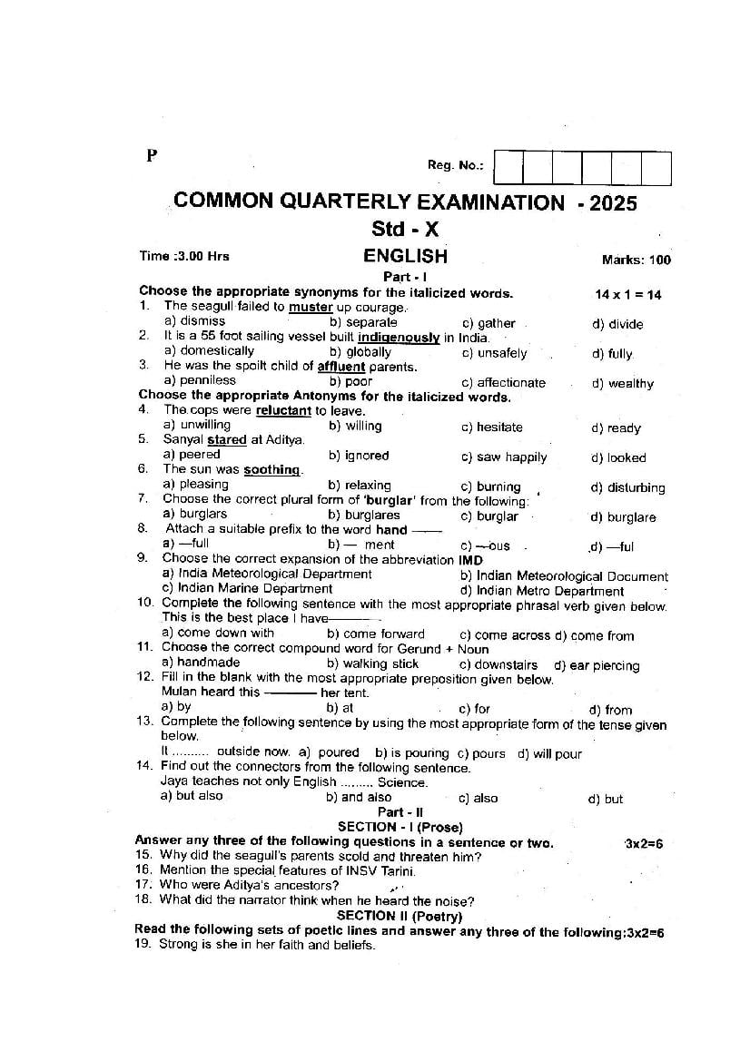 | Paper Here | 10th Quarterly Exam Question Paper of English |