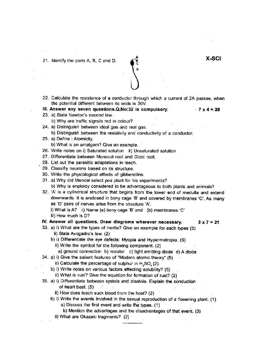 | Paper Here | 10th Quarterly Exam Question Paper of Science |