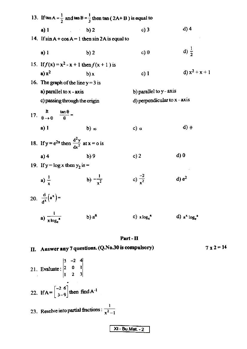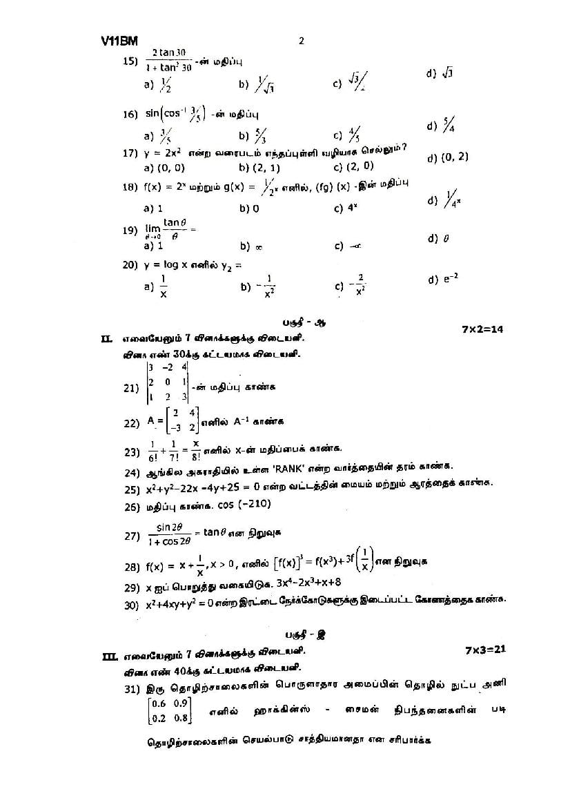 The TN Board question paper for quarterly exam of 11th standard Business Maths subject is as follows.
