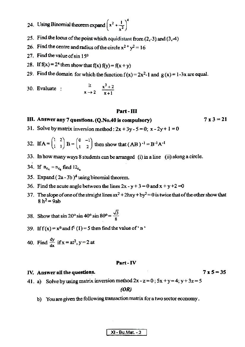 | Paper Here | 11th Quarterly Exam Question Paper of Business Maths |
