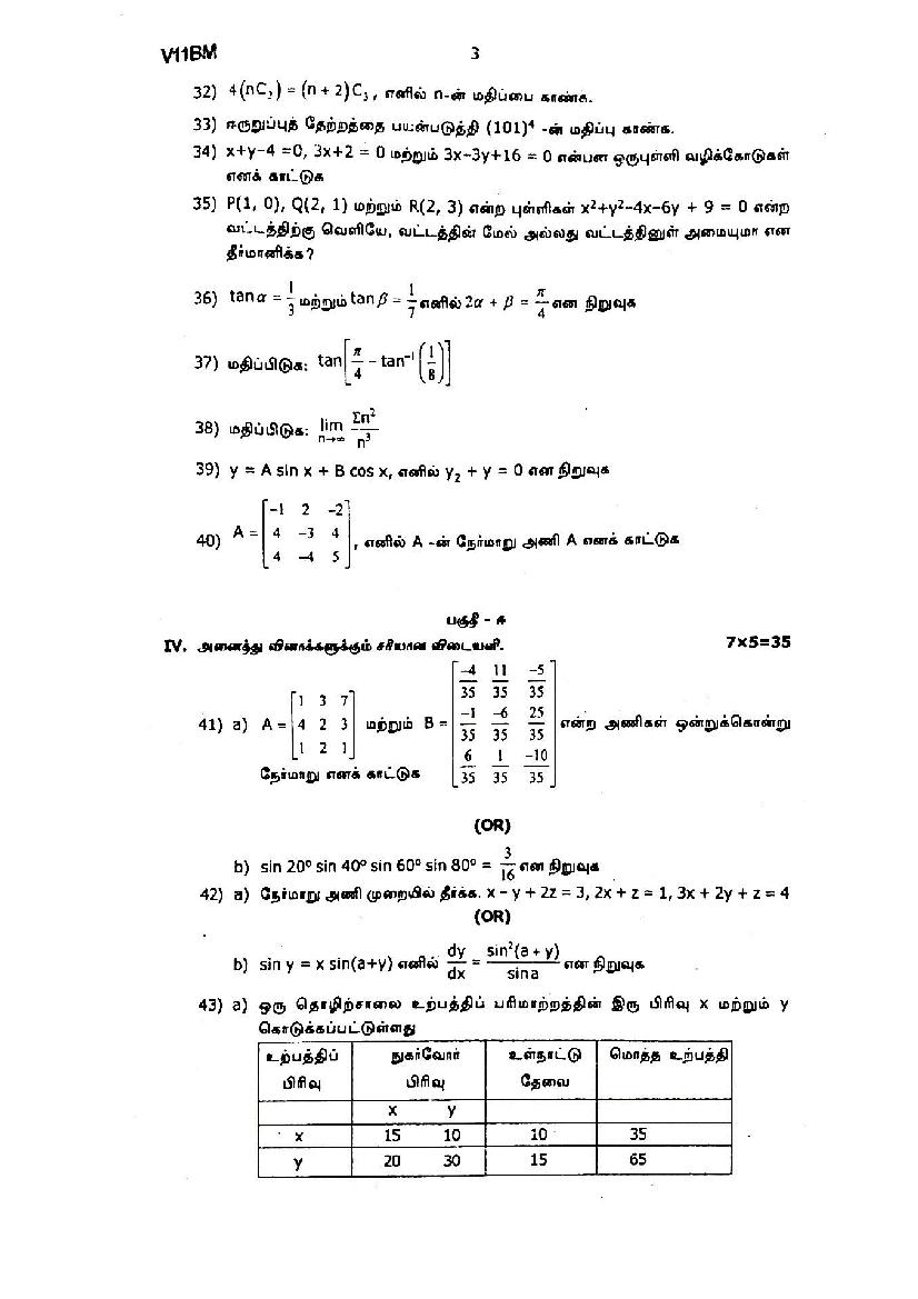 TN 11th Business Maths Quarterly Exam Question Paper 2026