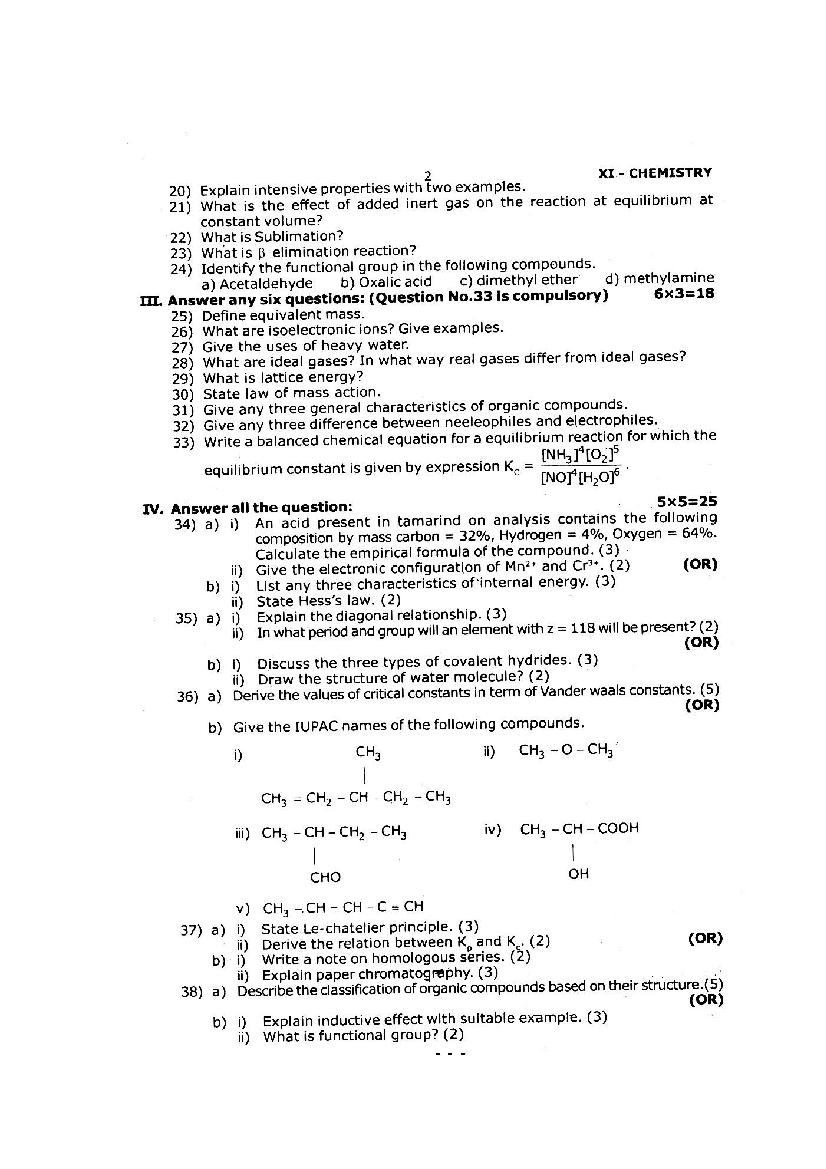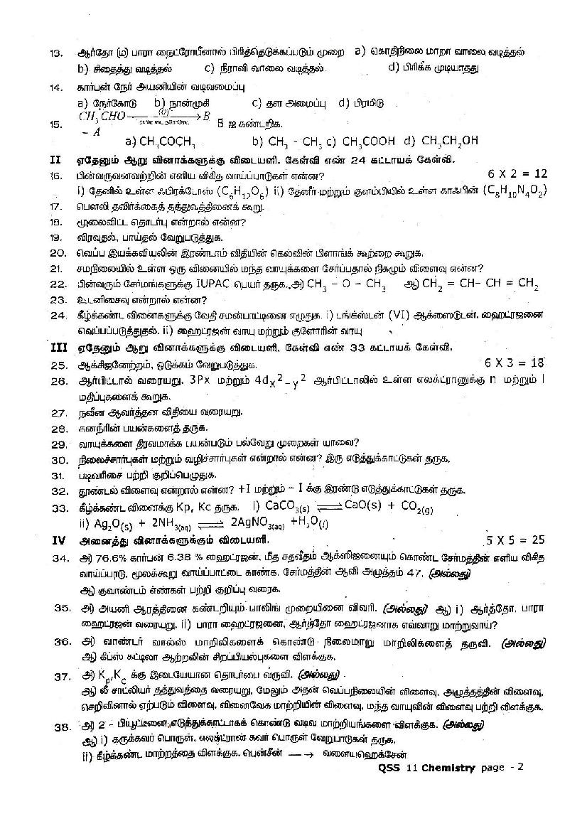 The TN Board question paper for quarterly exam of 11th standard Chemistry subject is as follows.