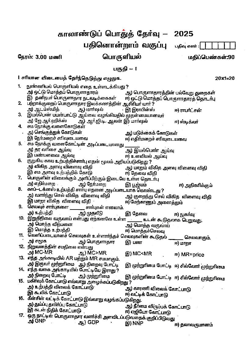 If you have queries on TN 11th Economics Quarterly Exam Question Paper 2026, then please ask in comments below.