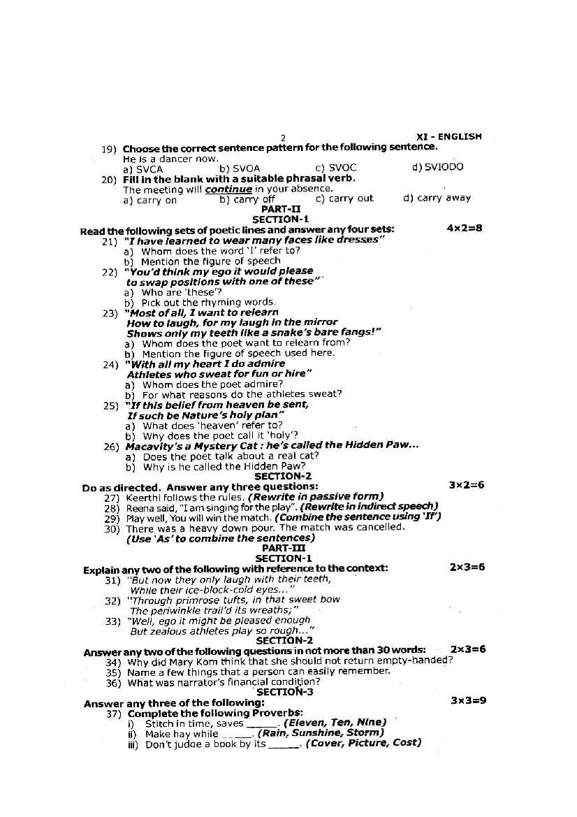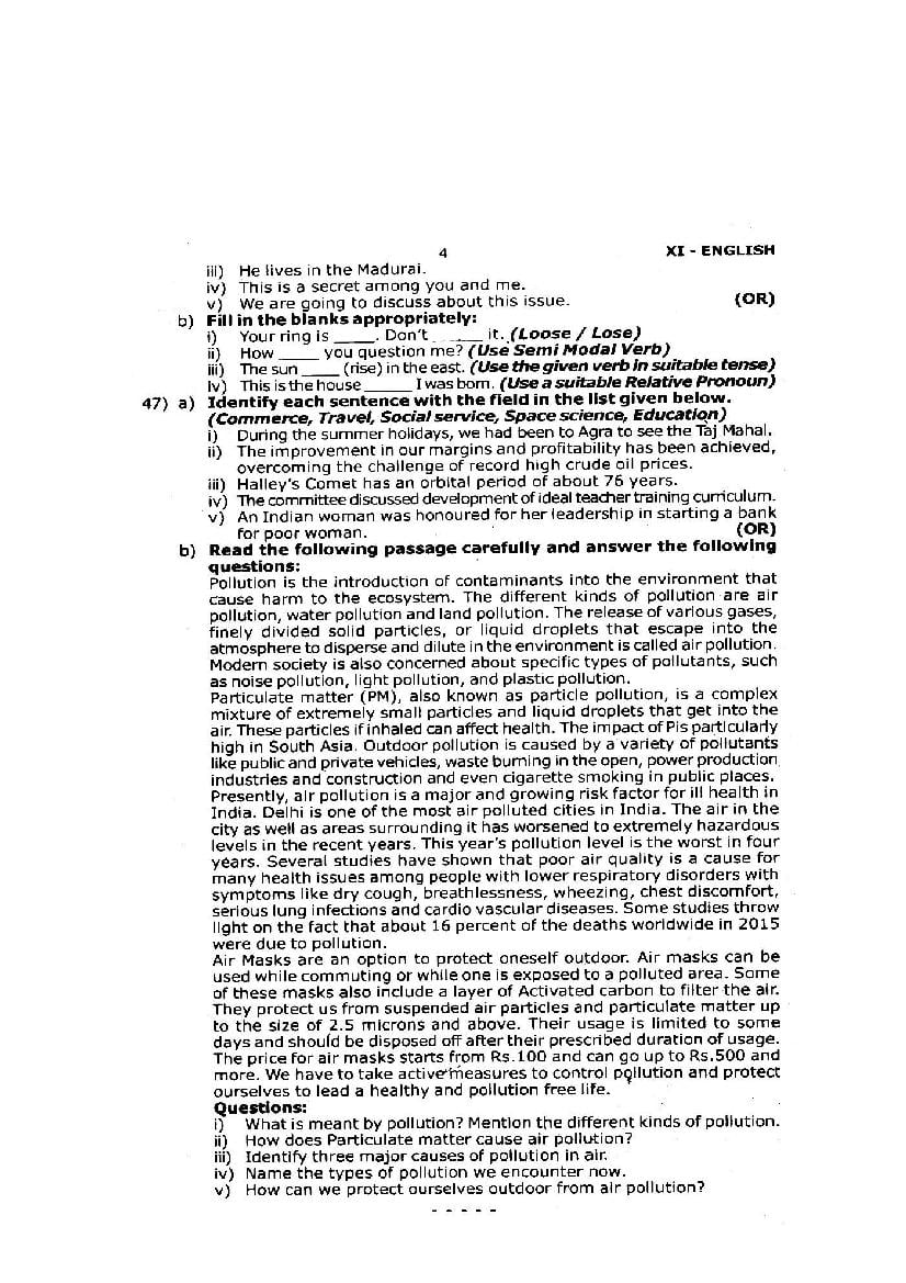 | Paper Here | 11th Quarterly Exam Question Paper of English |