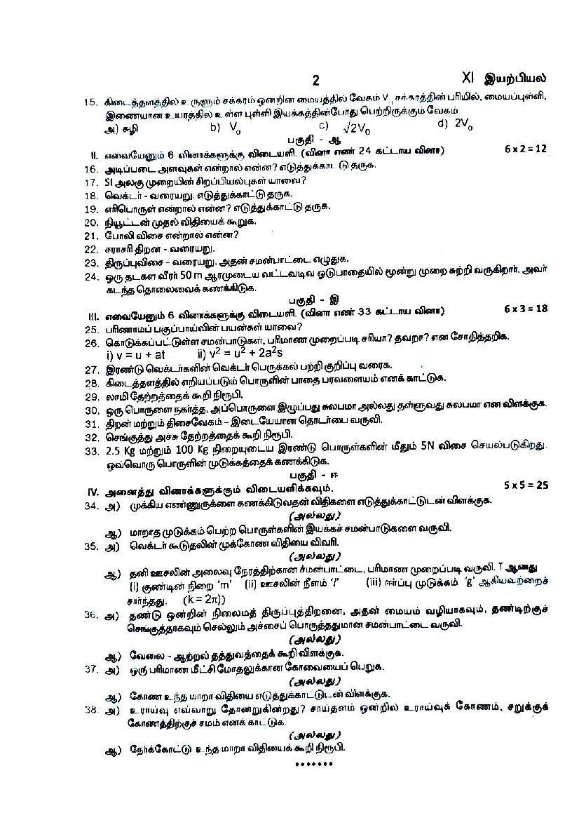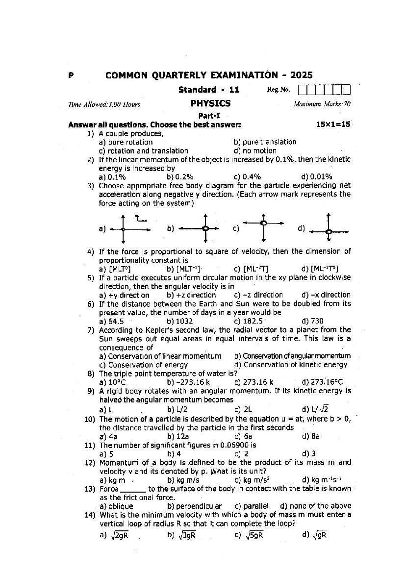 The TN Board question paper for quarterly exam of 11th standard Physics subject is as follows.