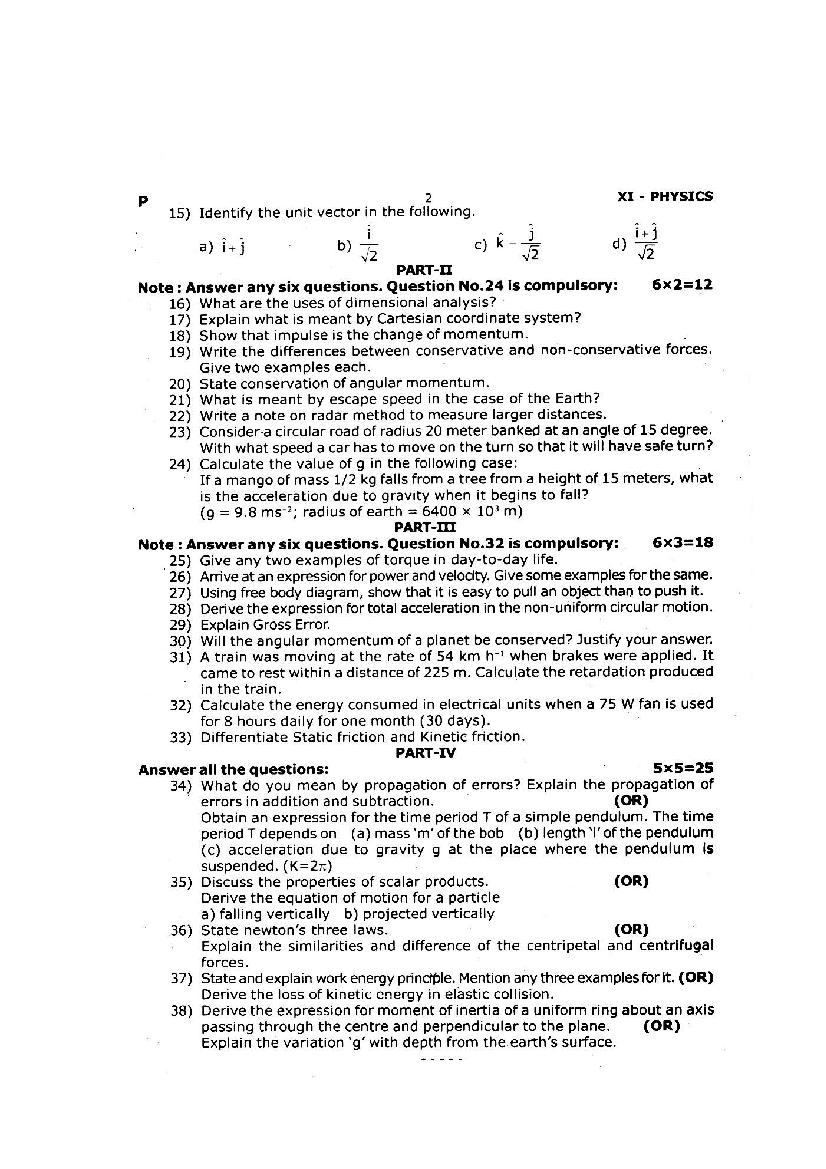 | Paper Here | 11th Quarterly Exam Question Paper of Physics |