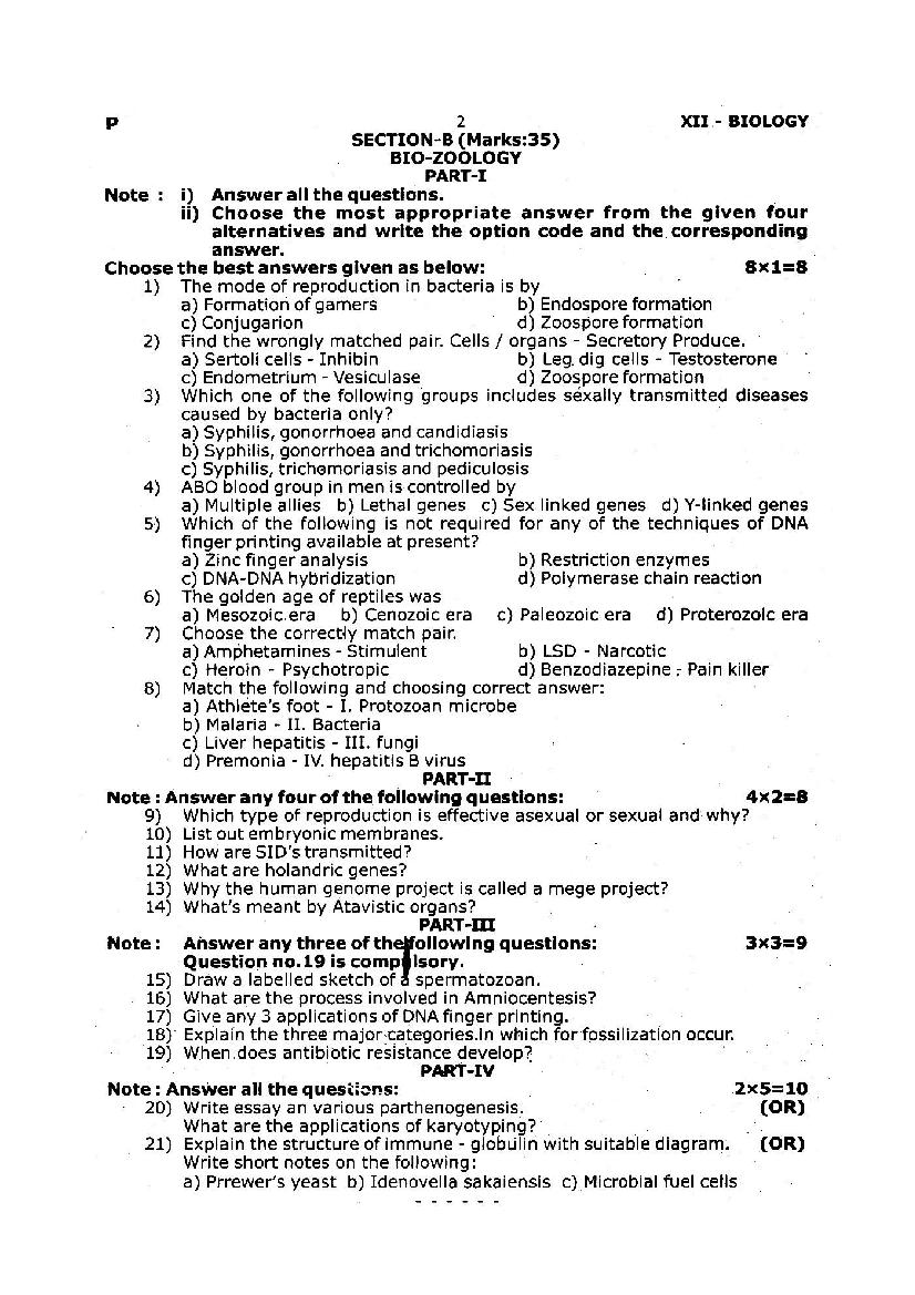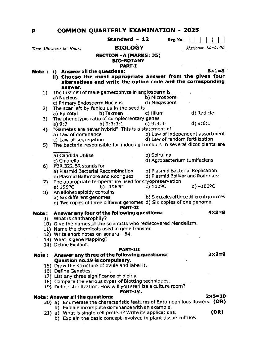 | Paper Here | 12th Quarterly Exam Question Paper of Biology |