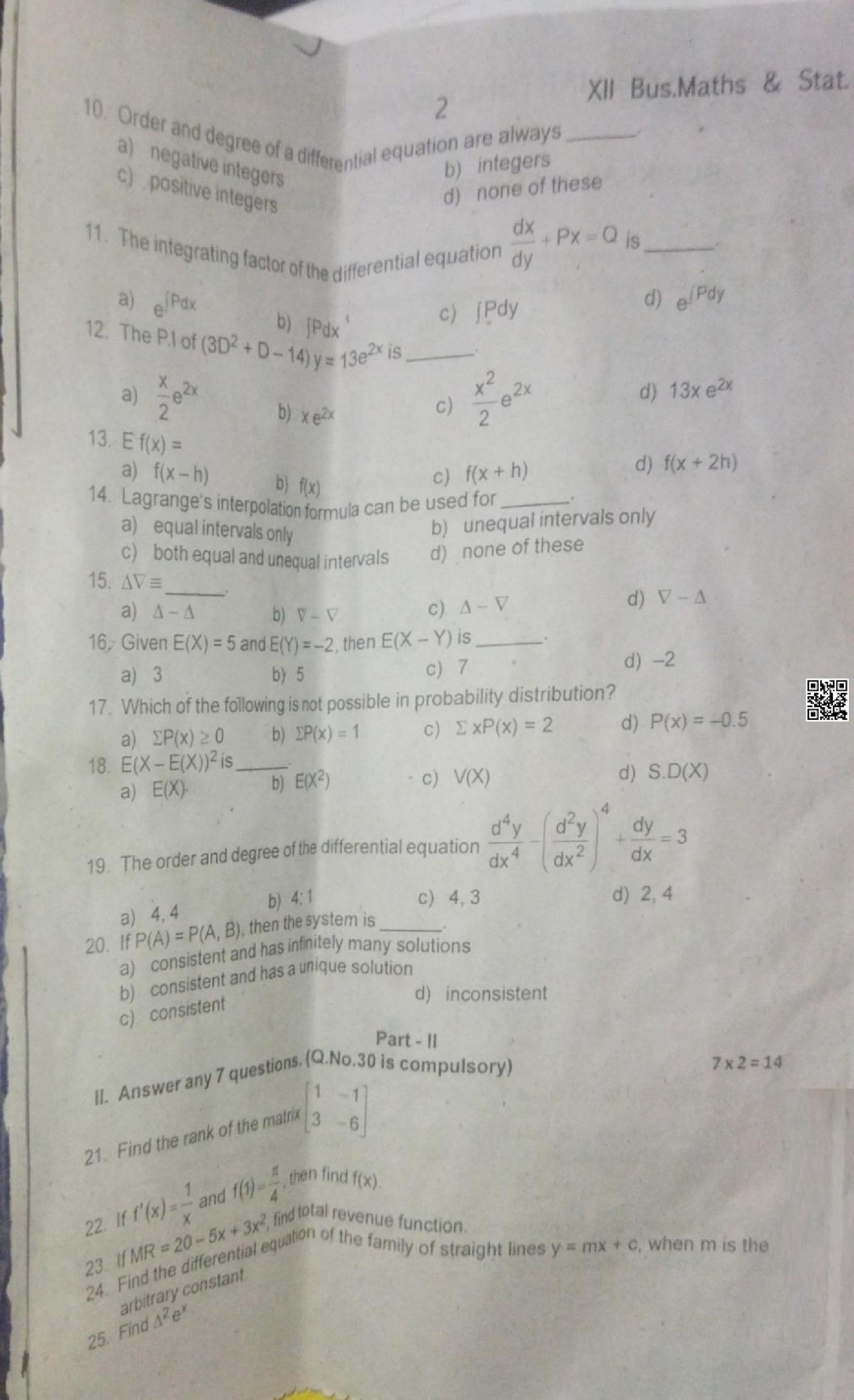 | Paper Here | 12th Quarterly Exam Question Paper of Business Maths |